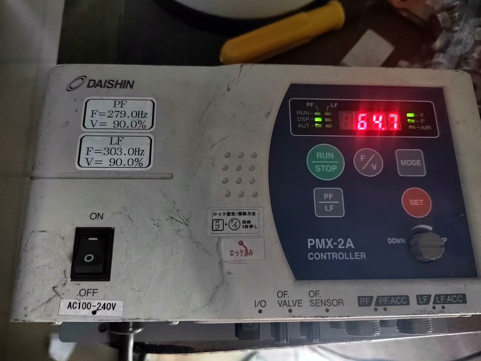 - 双频控制功能:支持PF(279.0Hz)和LF(303.0Hz)两种频率模式,电压输出均为90.0%,可根据不同物料特性灵活调节振动强度。