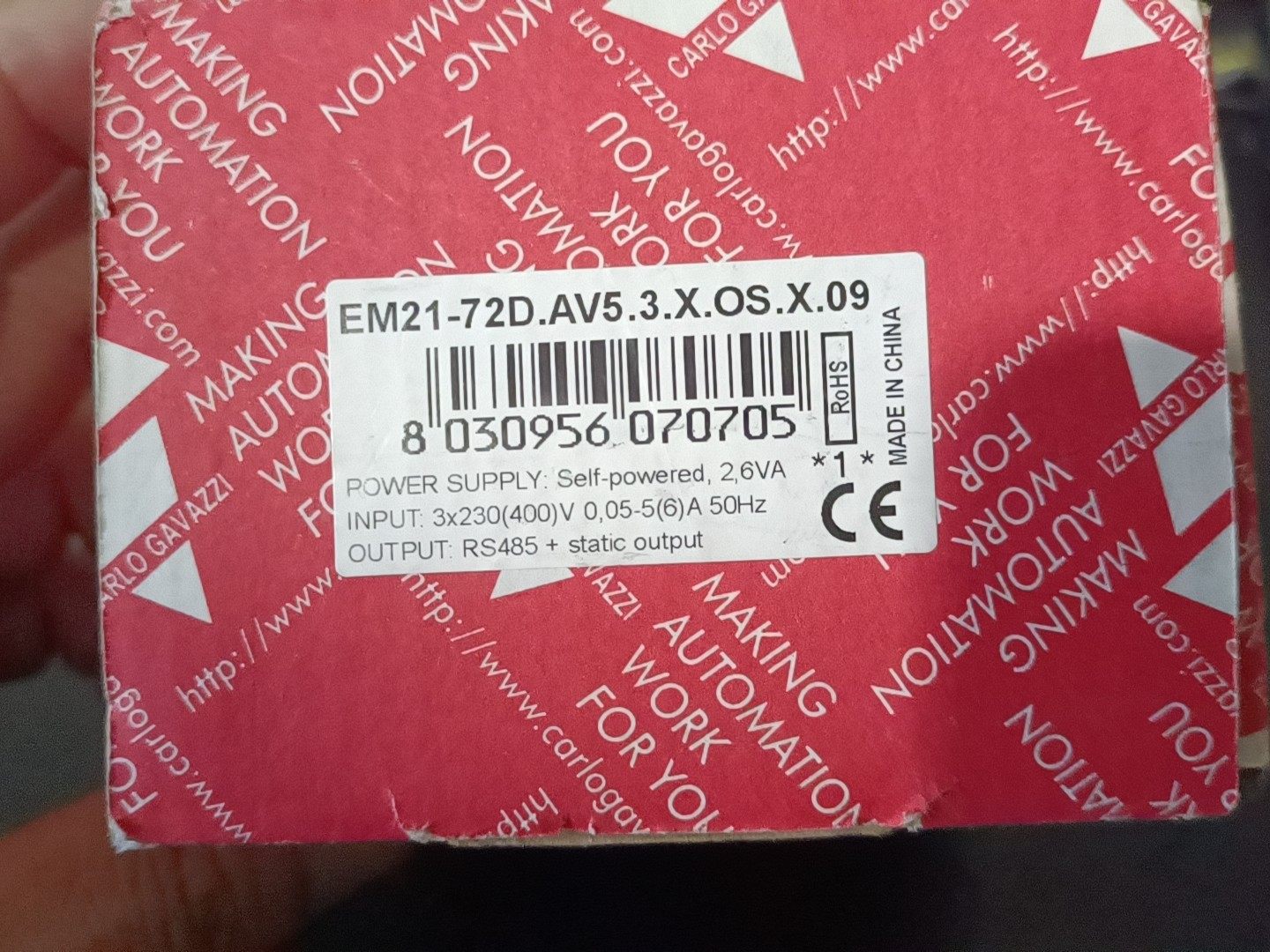 Carlo Gavazzi(瑞士佳乐)EM21-72D.AV5.3X.OS.X.09 电能表是一款全新带包装的工业级电能计量设备,专为精确测量电能消耗而设计,广泛应用于各类工业及商业场景。