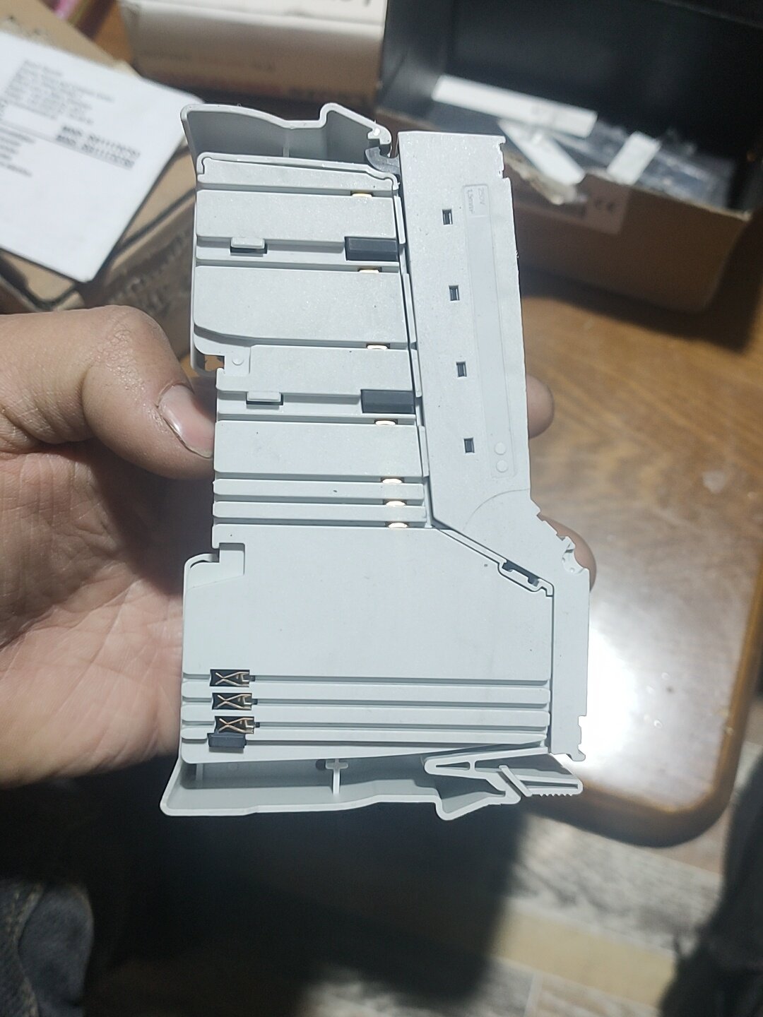 - 便捷接线:模块下方设有多个接线孔,配合顶部粉色标签的端子标识,便于快速接线与维护。