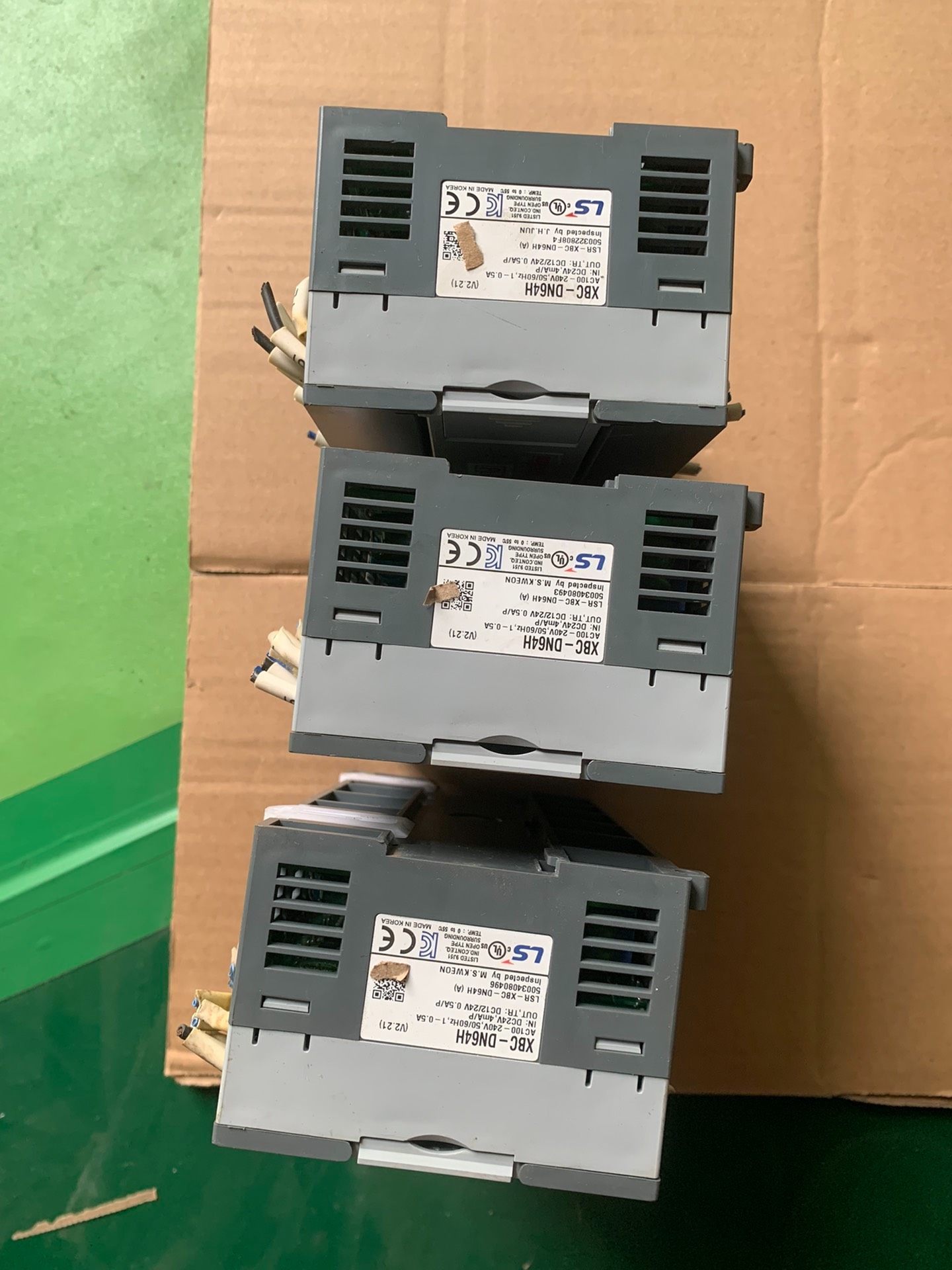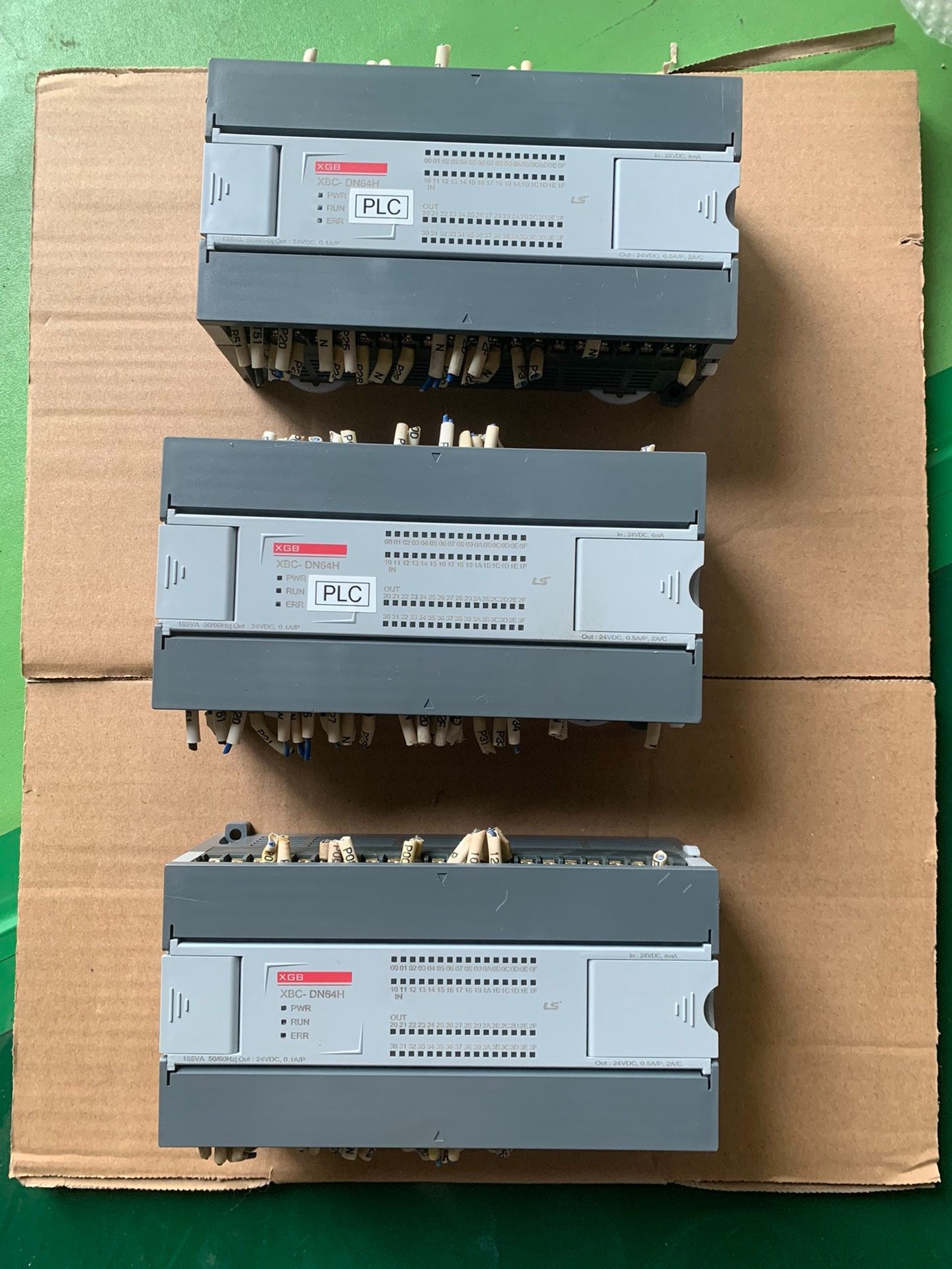 本产品为韩国LS品牌生产的XBC-DN64H型号可编程逻辑控制器(PLC),专为工业自动化应用设计,具备高性能、高稳定性与良好的扩展性。图片中展示了三台同型号设备,成色良好,外观无明显划痕或损坏,接线端子整齐排列,整体状态保持优异。