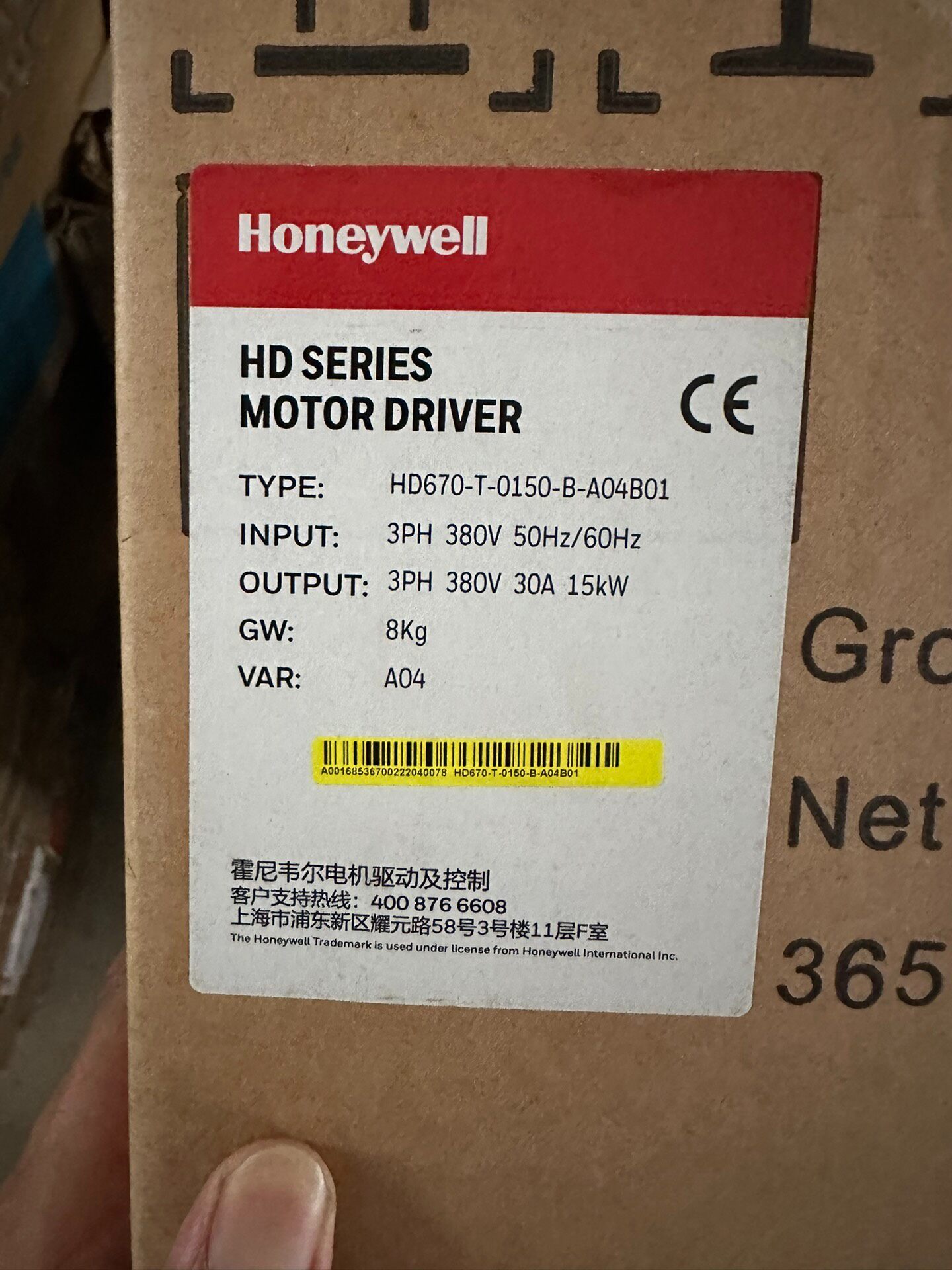 本产品为美国霍尼韦尔(Honeywell)公司生产的HD670系列变频器,型号为HD670-T-150-B-A04B01,是一款高性能、高可靠性的工业级变频调速设备,广泛应用于各类电机驱动系统中。