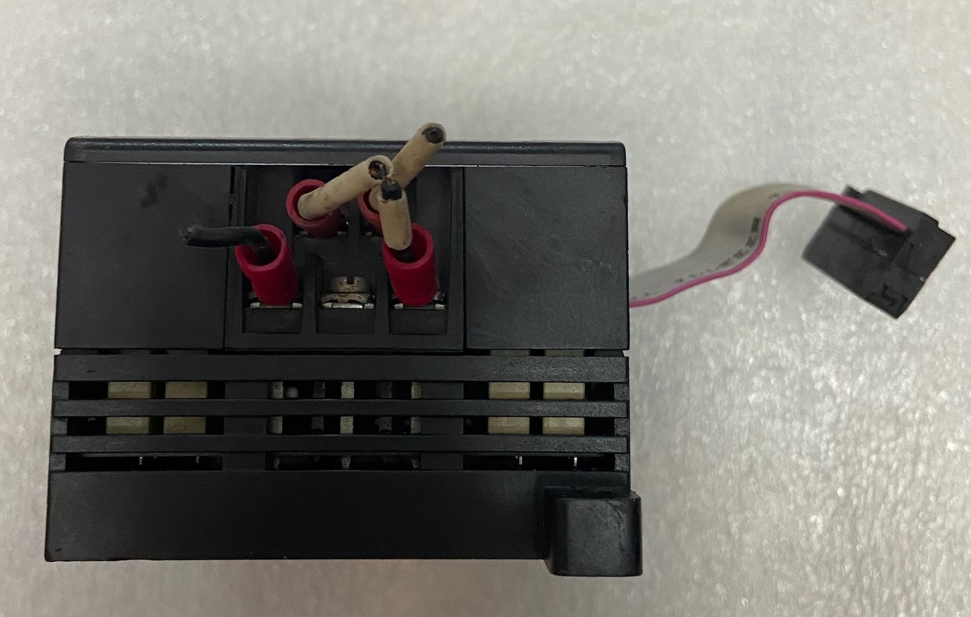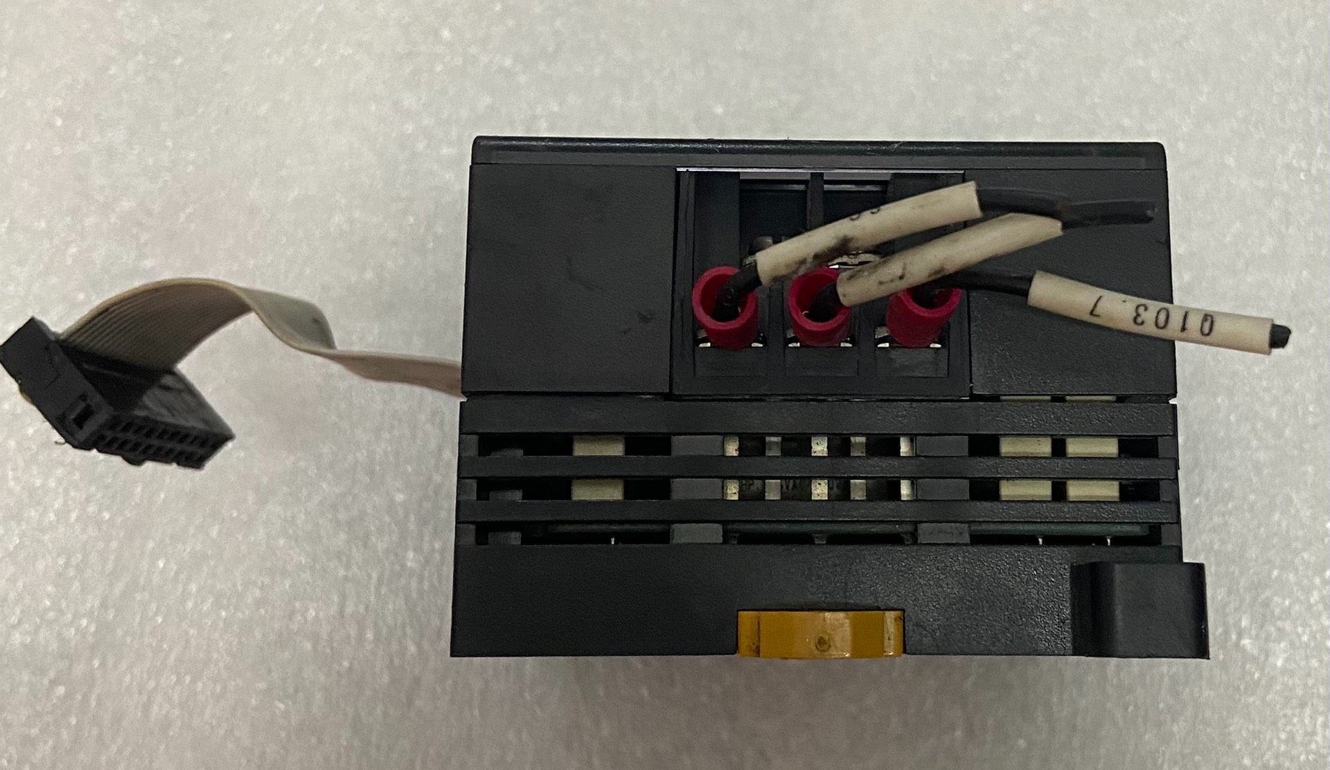 模块外观整洁,带有清晰的端子标识,顶部和底部均有接线端子,方便现场安装与维护。侧面配备扁平排线接口,用于与主控单元通信。整体结构紧凑,耐用性强,适用于恶劣工业环境。