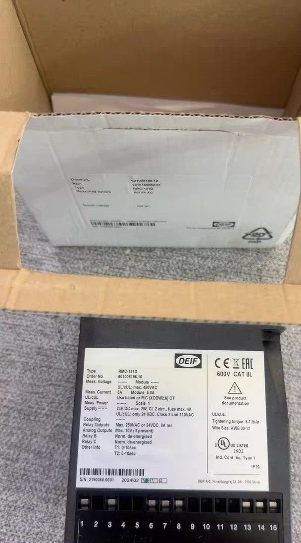 DEIF丹控RMC-131D控制器,全新原装,实物拍摄。型号RMC-131D/2,带继电器输出和差分电流检测功能。适用于工业自动化控制系统,支持交流供电。功能完好,带原厂包装盒。议价可聊。