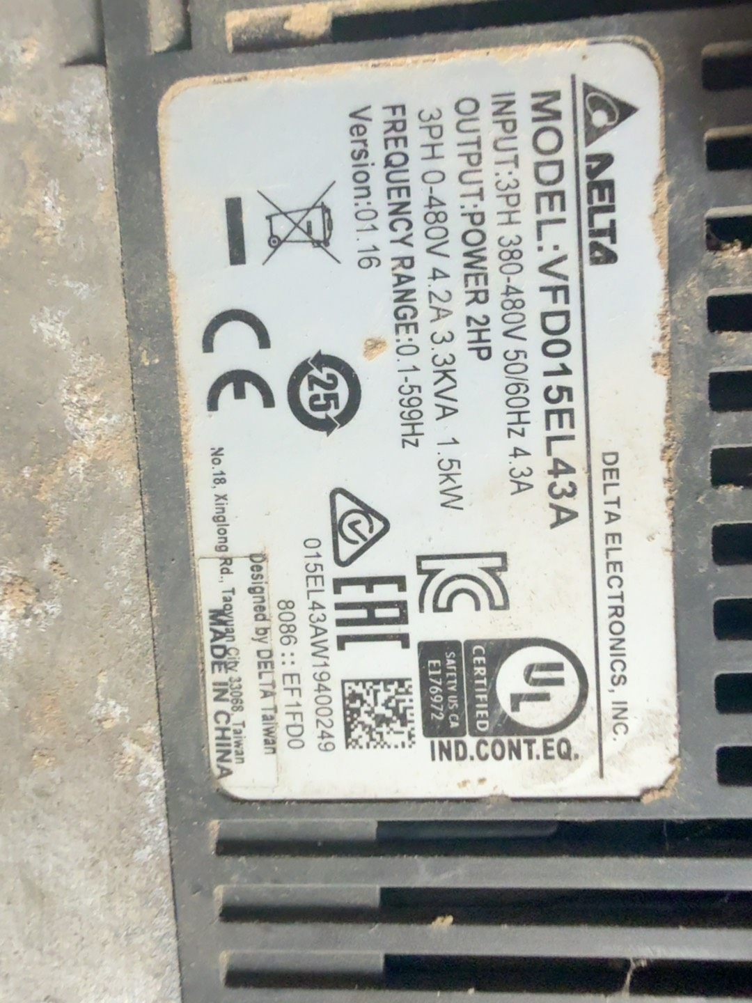 - 型号:VFD015EL43A