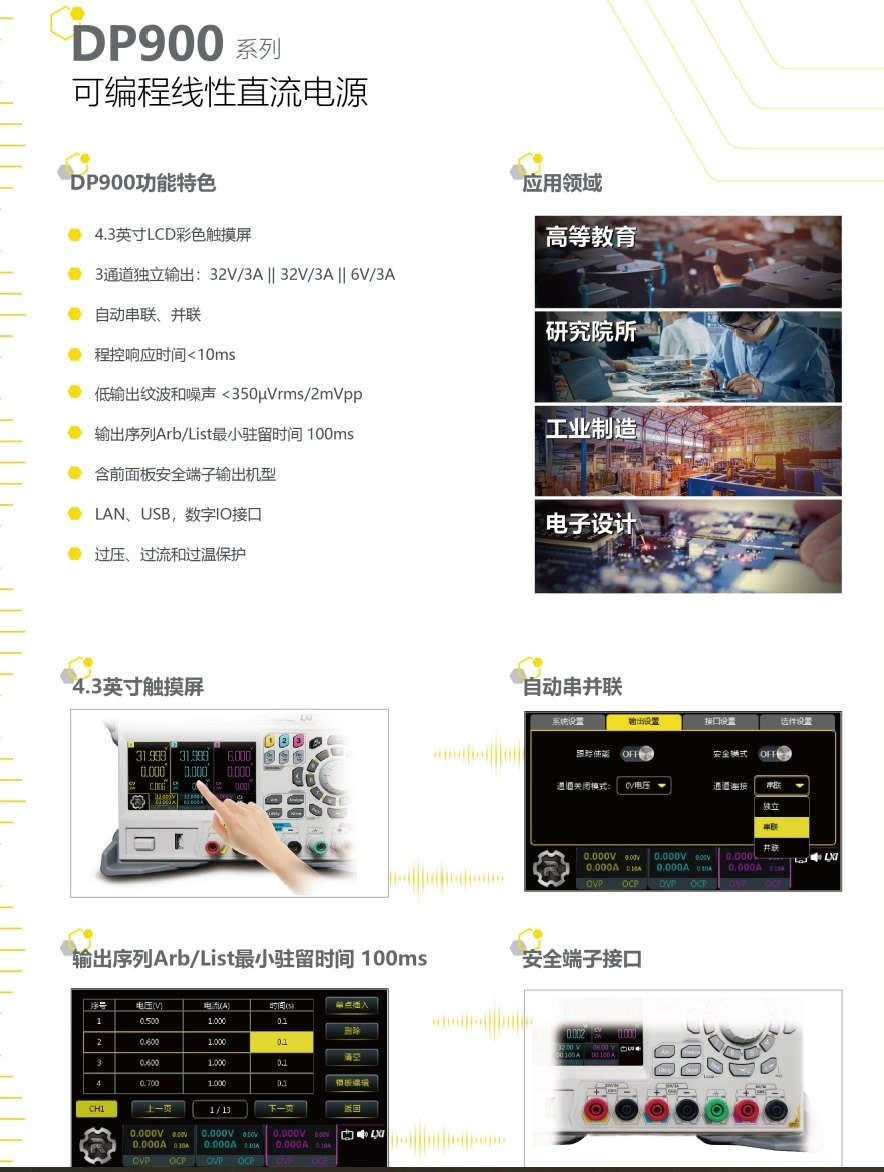 - 一键串并联功能:支持通道间一键串联或并联,灵活扩展输出电压或电流范围,提升使用便利性。
