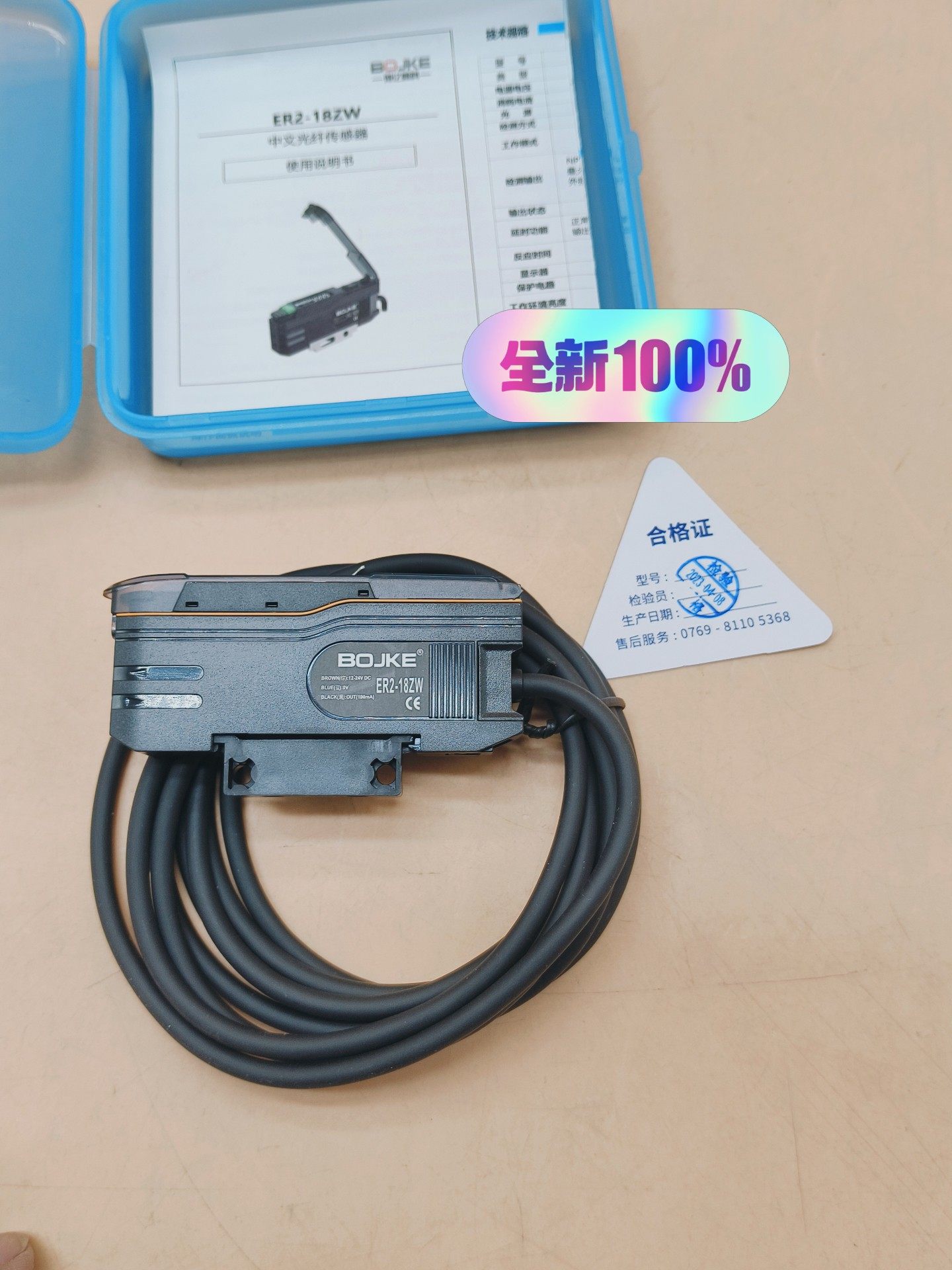 本款产品为博亿精科(BOJKE)生产的ER2-18ZW型号光纤传感器,专为工业自动化环境设计,适用于高精度物体检测、位置判断、颜色识别等多种应用场景。