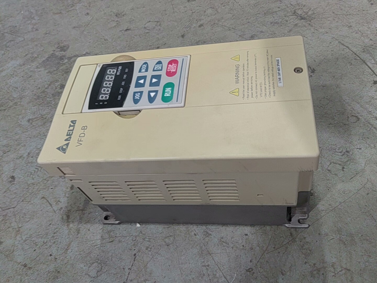 本款台达(DELTA)变频器型号为VFD037B43A,属于VFD-B系列,是一款高性能、高可靠性的工业级变频调速装置。该设备专为三相交流电机设计,广泛应用于机床、风机、泵类、传送带等需要精确调速的工业场景。