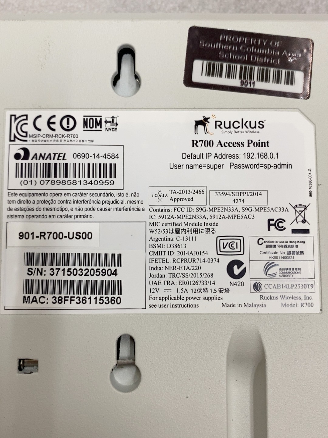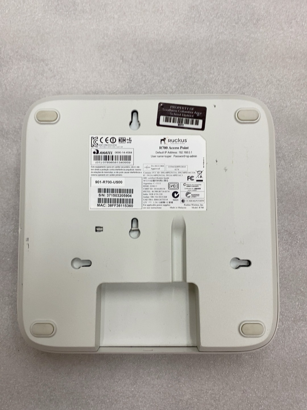 RUCKUS优科R700 901-R700-US00无线AP.原装二手,功能完好,成色如图。不带电源,配电源加30元,不提供技术支持。 感兴趣私聊