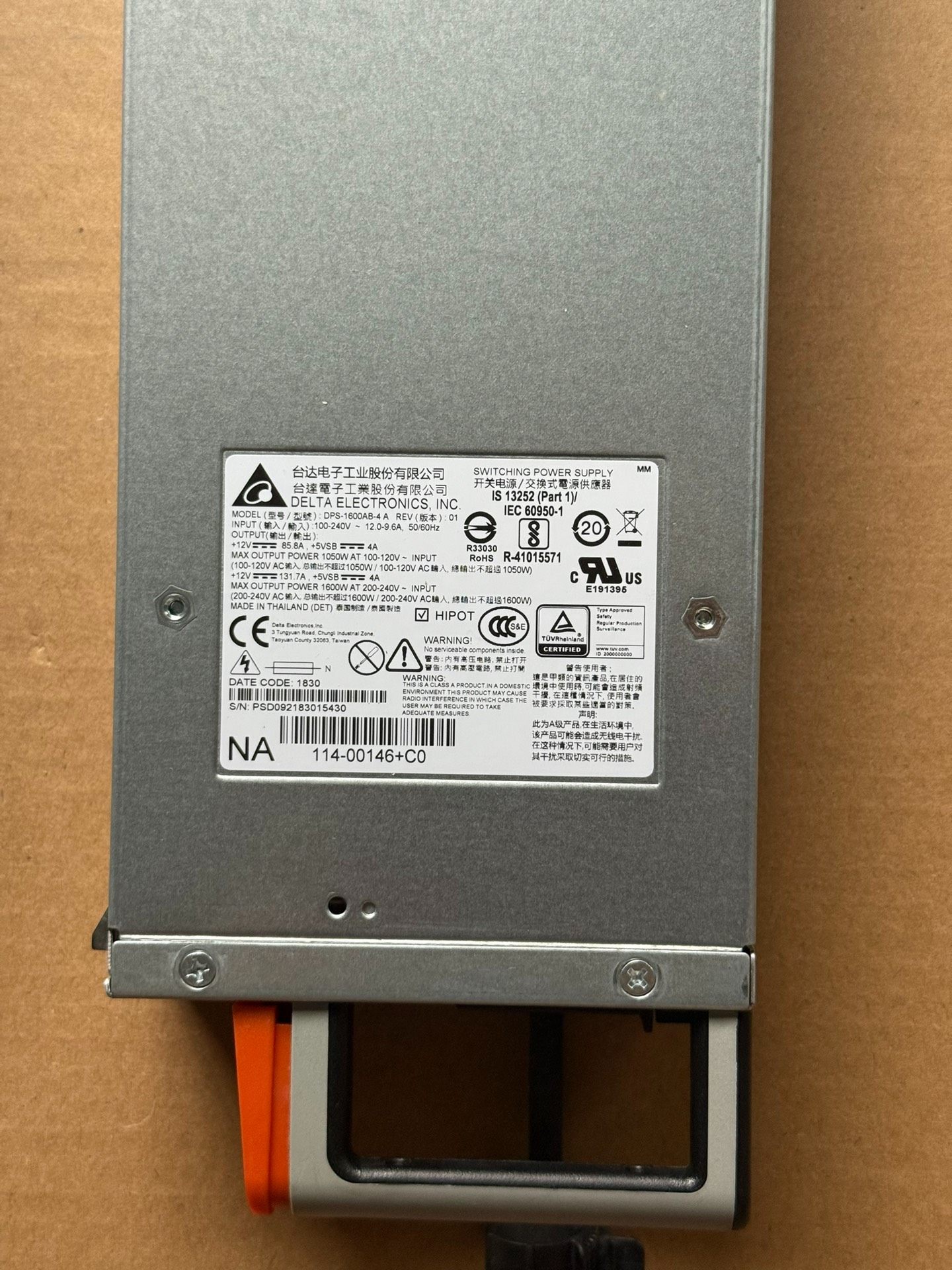 NetApp X97600A 114-00146 1600W电源模块