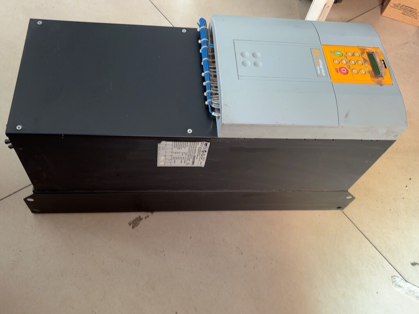 本产品为派克(Parker)品牌直流调速器,型号为590P-53338042-A00-U4A0,全称590P/0380/500/0041/UK/AN/0/230/0,英国制造。作为拆机件,实物成色如图所示,外观主体为灰色,搭配橙色操作面板,面板上集成显示屏及功能按键,便于参数设置与运行状态监控。