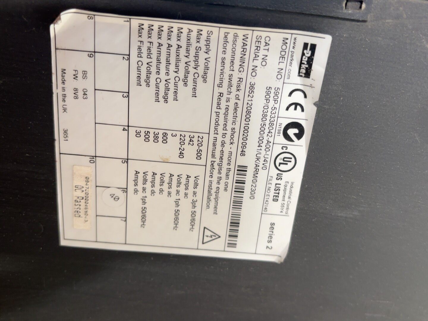 - 型号:590P-53338042-A00-U4A0 / 590P/0380/500/0041/UK/AN/0/230/0