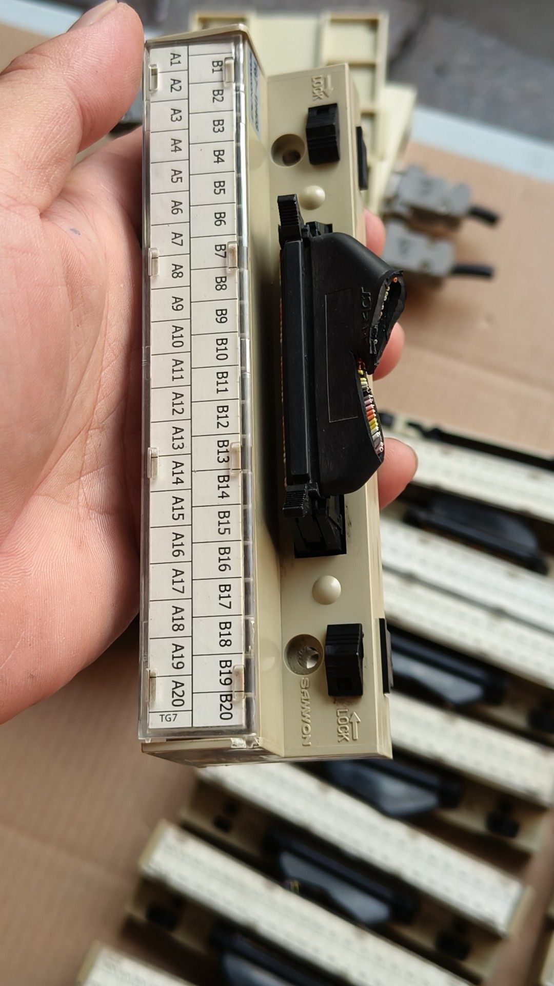 本批次产品为韩国三元(Samwon)品牌生产的工业用接线端子排,型号涵盖 TG7-1H40S 和 TG-1H20S 两种规格。产品均为拆机二手件,经过检查确认状态良好,无明显损坏或老化现象,适合用于各类工业自动化控制系统中的电气连接与信号传输。