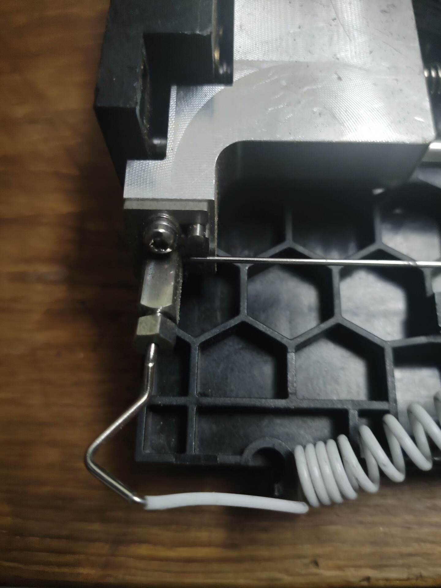 此部件已从原设备中拆卸,适合用于设备维修、更换或技术研究。其内部包含电机、弹簧、导轨及电路板等关键组件,展现了先进的制造工艺与设计理念。