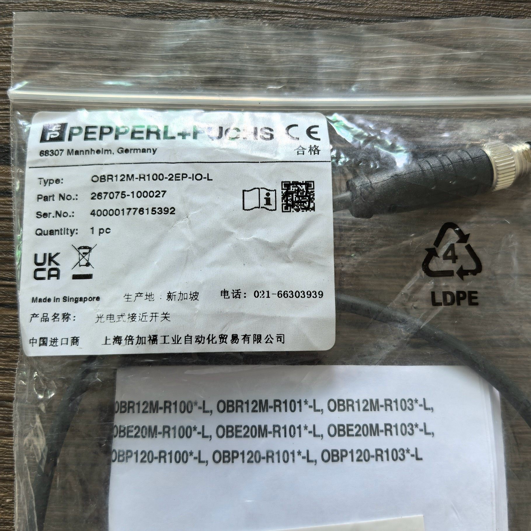 - 型号:OBR12M-R100-2EP-IO-L