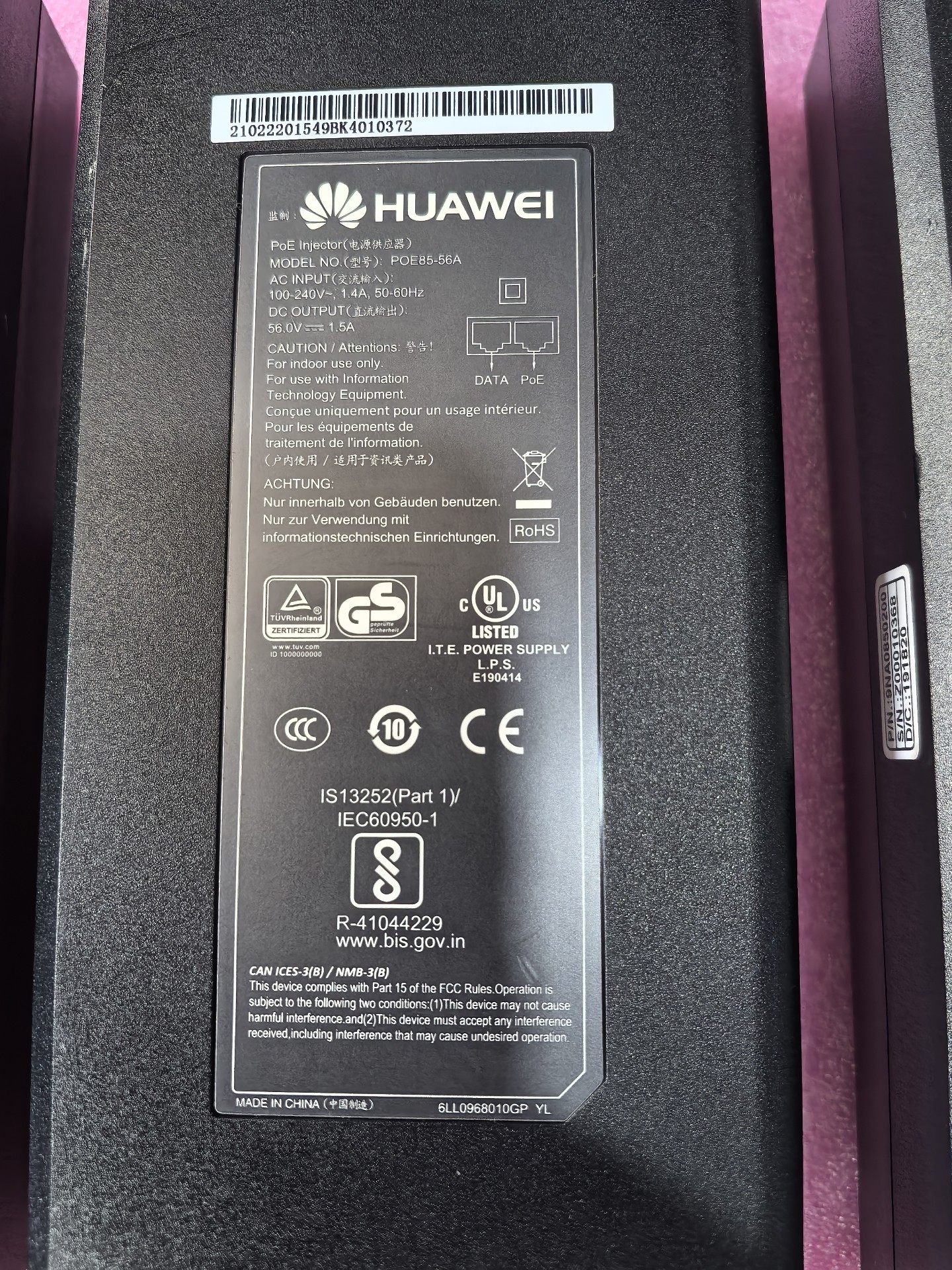本款产品为原装华为POE85-56A电源适配器,专为满足现代网络设备的供电需求而设计。其紧凑的外形设计不仅节省空间,而且便于安装在各种环境中。