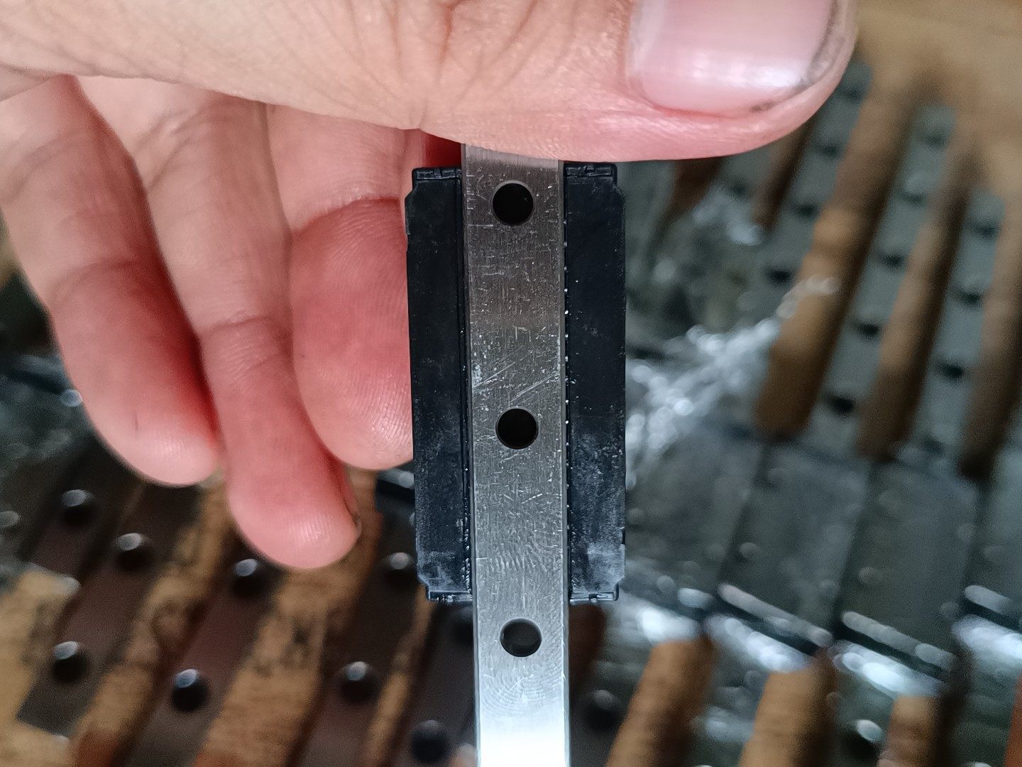 本产品为CPC品牌9ML型号直线导轨滑块,长度200mm,整体呈黑色金属材质,结构精密,表面光滑,带有均匀分布的安装孔,便于集成安装。滑块部分包裹塑料保护膜,有效防止运输及存储过程中的刮擦,保持几乎全新的状态,确保使用性能稳定。