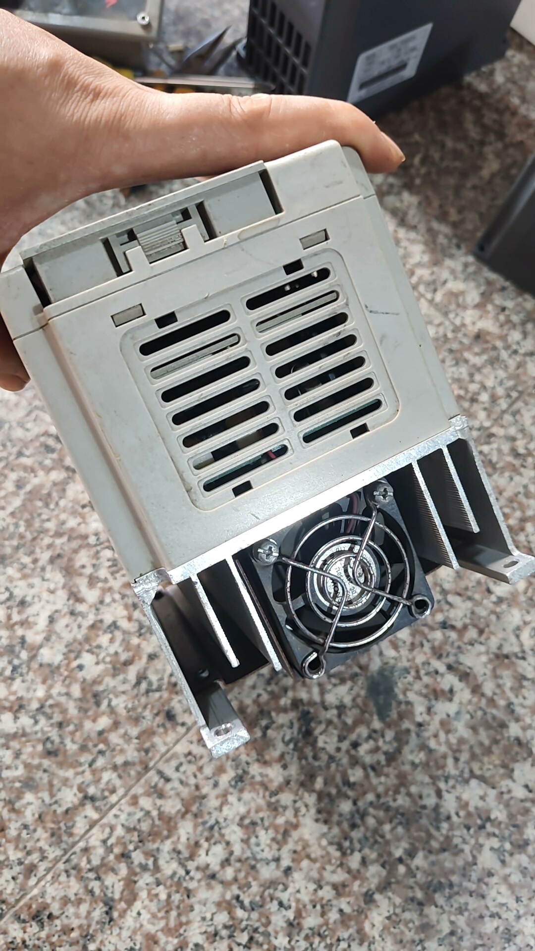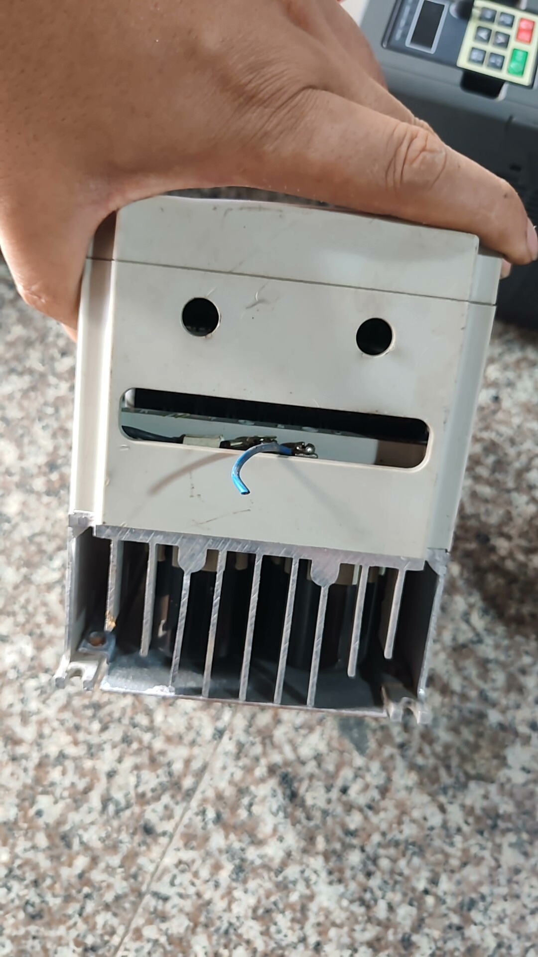 该变频器具有良好的稳定性和耐用性,适用于水泵、风机、传送带等多种工业设备的电机控制,能有效实现节能降耗和延长设备寿命。同时,设备附有安全警告标识,提醒用户在安装前阅读手册、断电后等待电容放电、确保接地连接良好,保障使用安全。