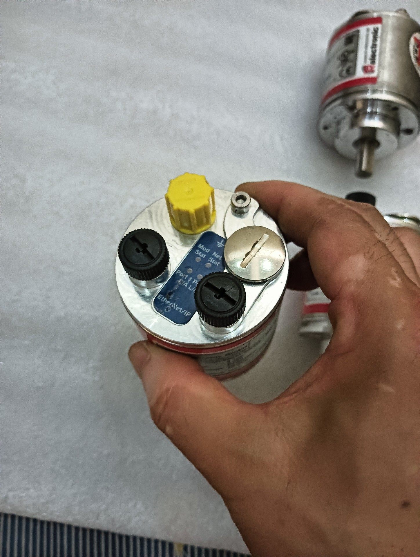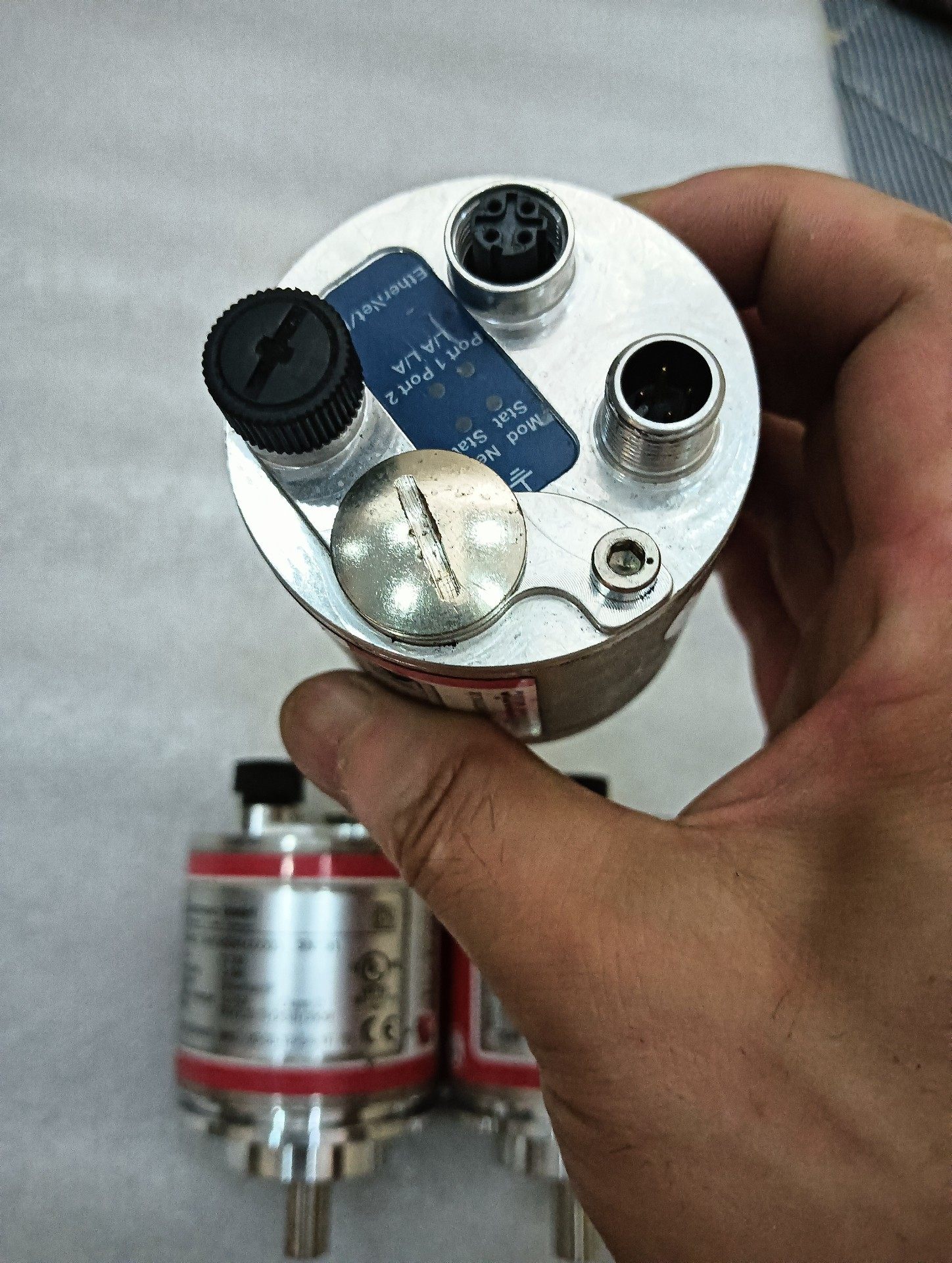 外观特征:圆柱形金属外壳,红色标签环带,两端设有安装法兰与轴连接结构,一侧配备黑色调节旋钮,整体设计紧凑,易于安装与调试。