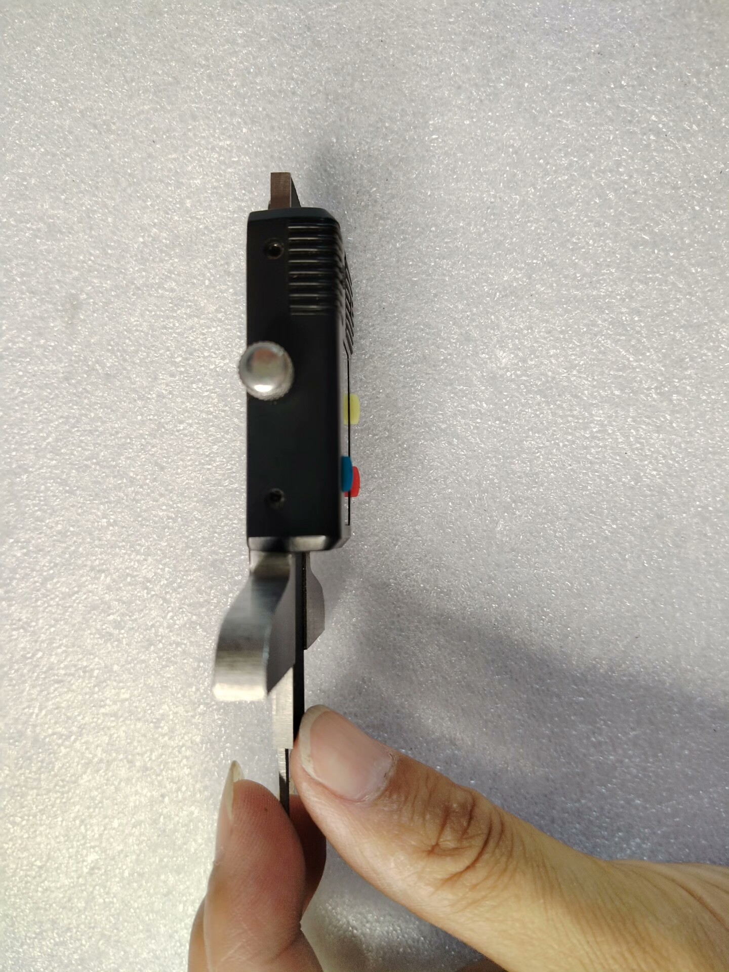 这是一款专业的数显胎纹深度尺,适用于0-25mm范围内的精确测量。该产品具备清晰的数字显示屏,可直接读取测量数据,避免了传统刻度尺的人为误差。