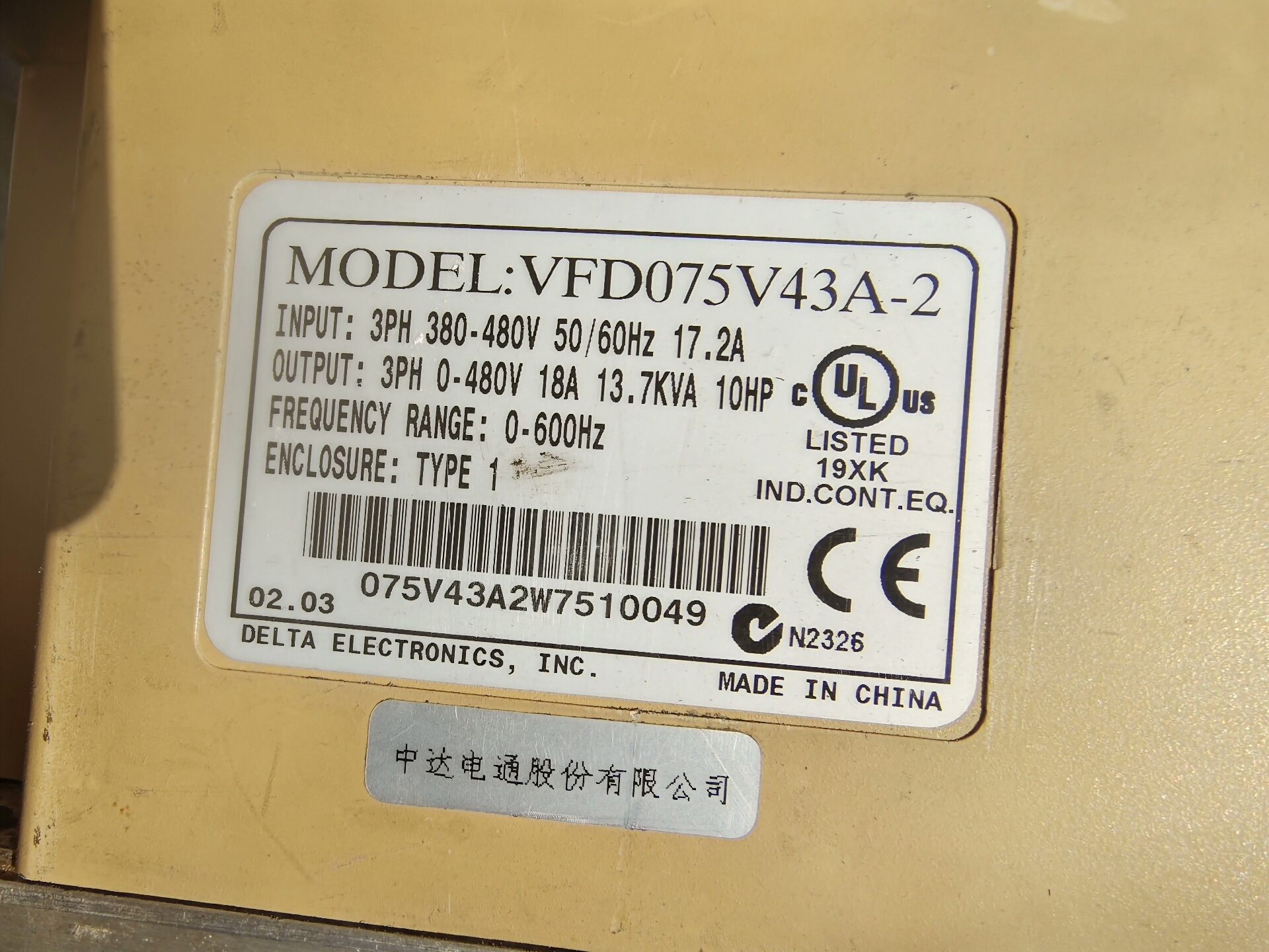 - 型号:VFD075V43A-2