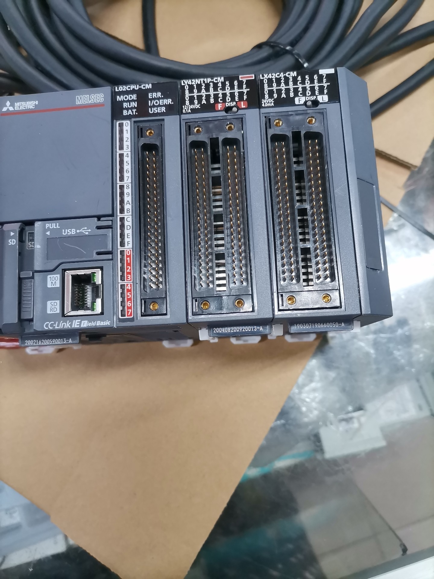 本产品为三菱原装L系列PLC模块组合,包含L02CPU-CM CPU模块、LY42NT1P-CM I/O模块、LX42-CM模块及电源模块,整套设备成色新,功能包好,适用于各类工业自动化控制场景。