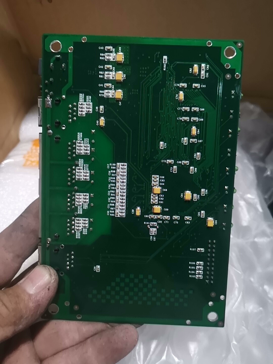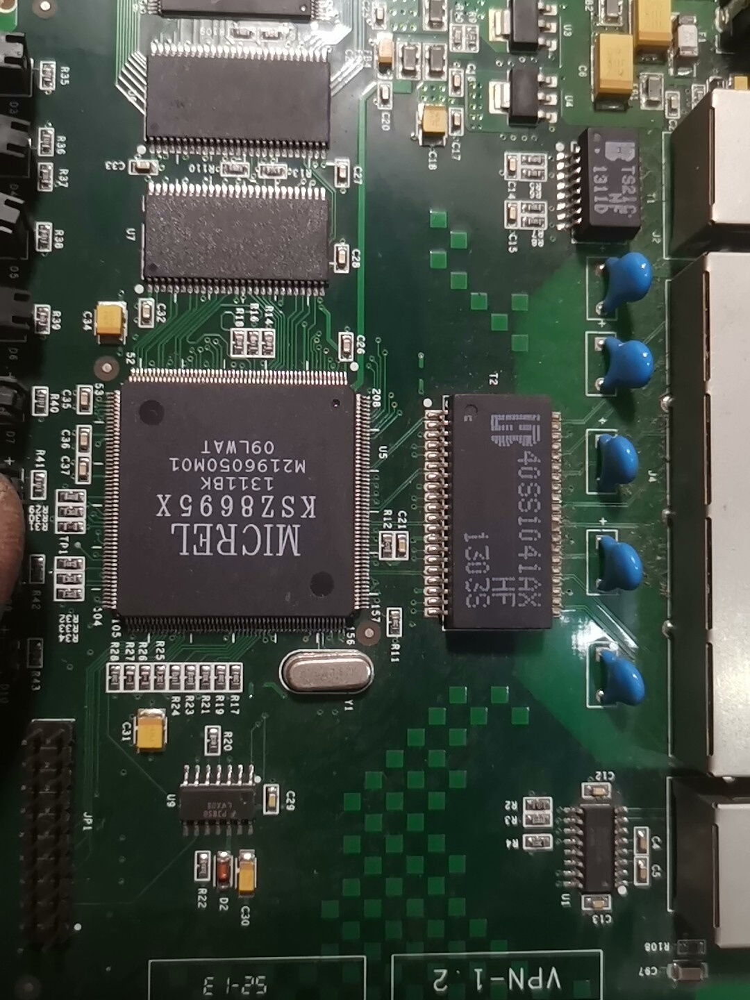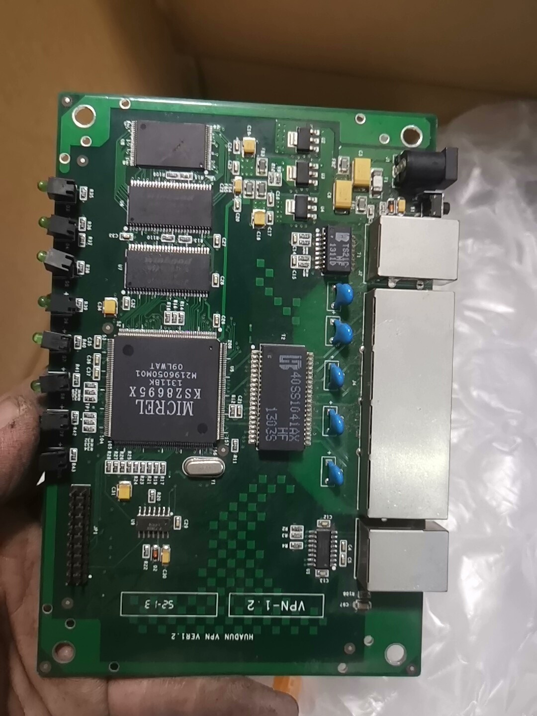 本产品为二手拆机网盾路由电路板,共计146张,单张重量0.1公斤,整体打包出售,邮费到付。电路板采用绿色基板设计,集成了主芯片KSZ8695X及Winbond W9812G6JH-6存储芯片等关键电子元件,适用于网络设备维修、电子元件回收利用或相关电子项目开发。