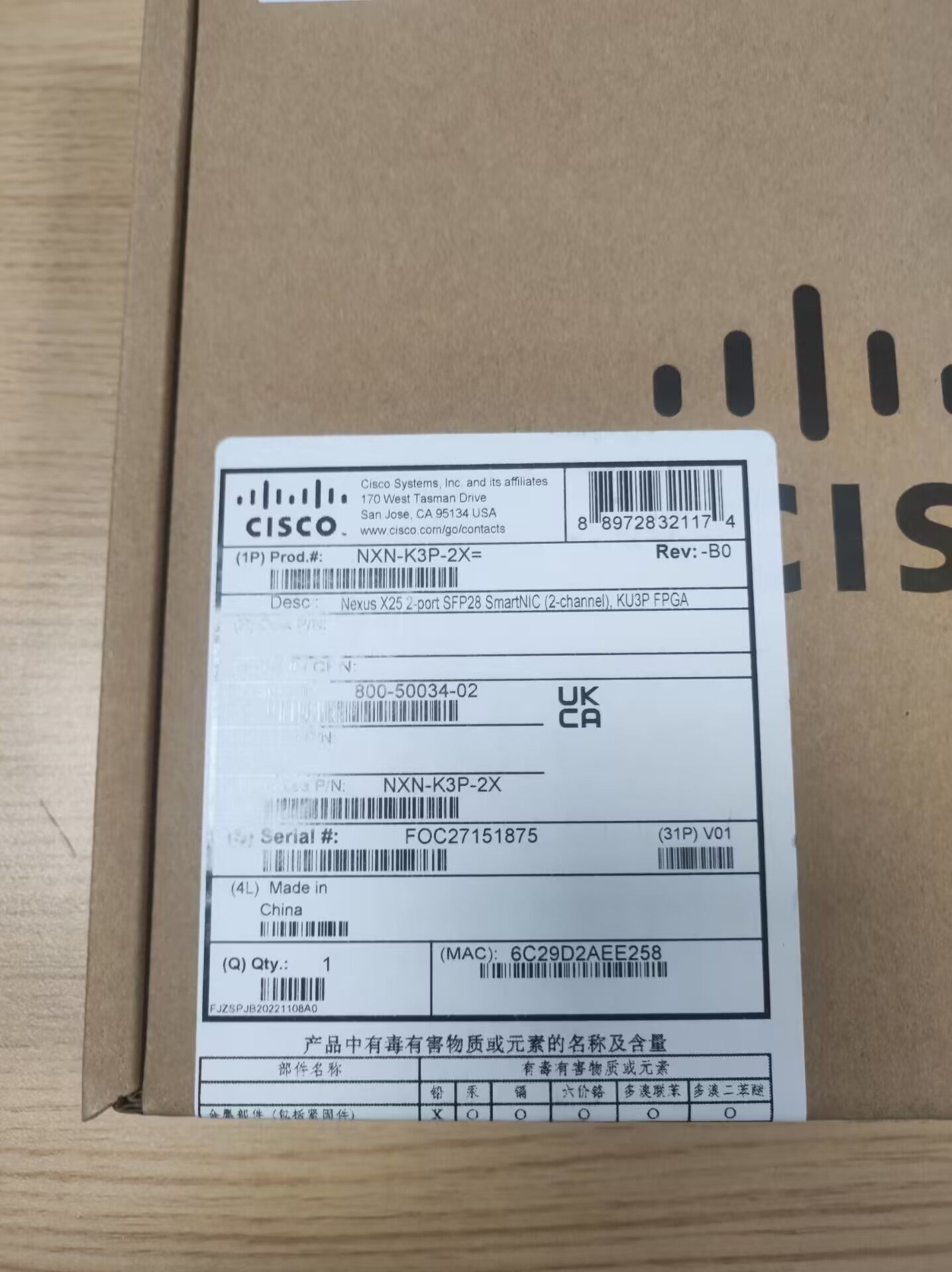 全新原装未拆封,Cisco NXN-K3P-2X=X25 Nexus X25 10/25g 双口 2port Pciex8 有需要的先联系我