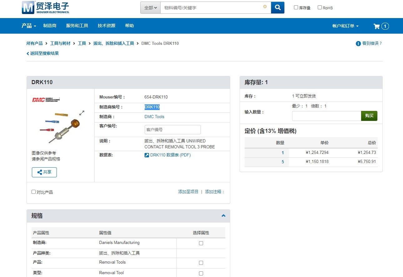 美国进口DMC拔出、拆除和插入工具 DRK110 全新原装 少量库存 市场价8折出