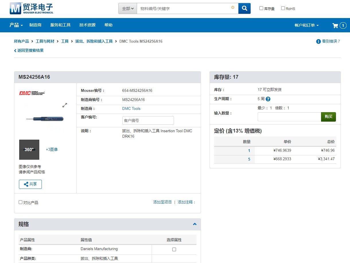 DANIELS MS24256A16 DAK16 拔出、拆除和插入工具是美国进口的专业手动工具,由DANIELS MFG. CORP.生产,原产于美国奥兰多。产品采用蓝色金属主体设计,配备黑色毛刷状端部,整体结构紧凑,操作便捷,适用于各类连接器或端子的精准拔出、拆除与插入作业,确保连接部件的安全装卸。
