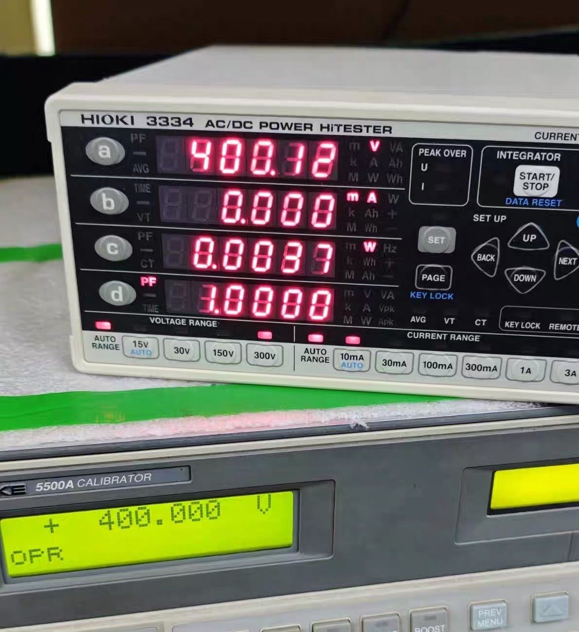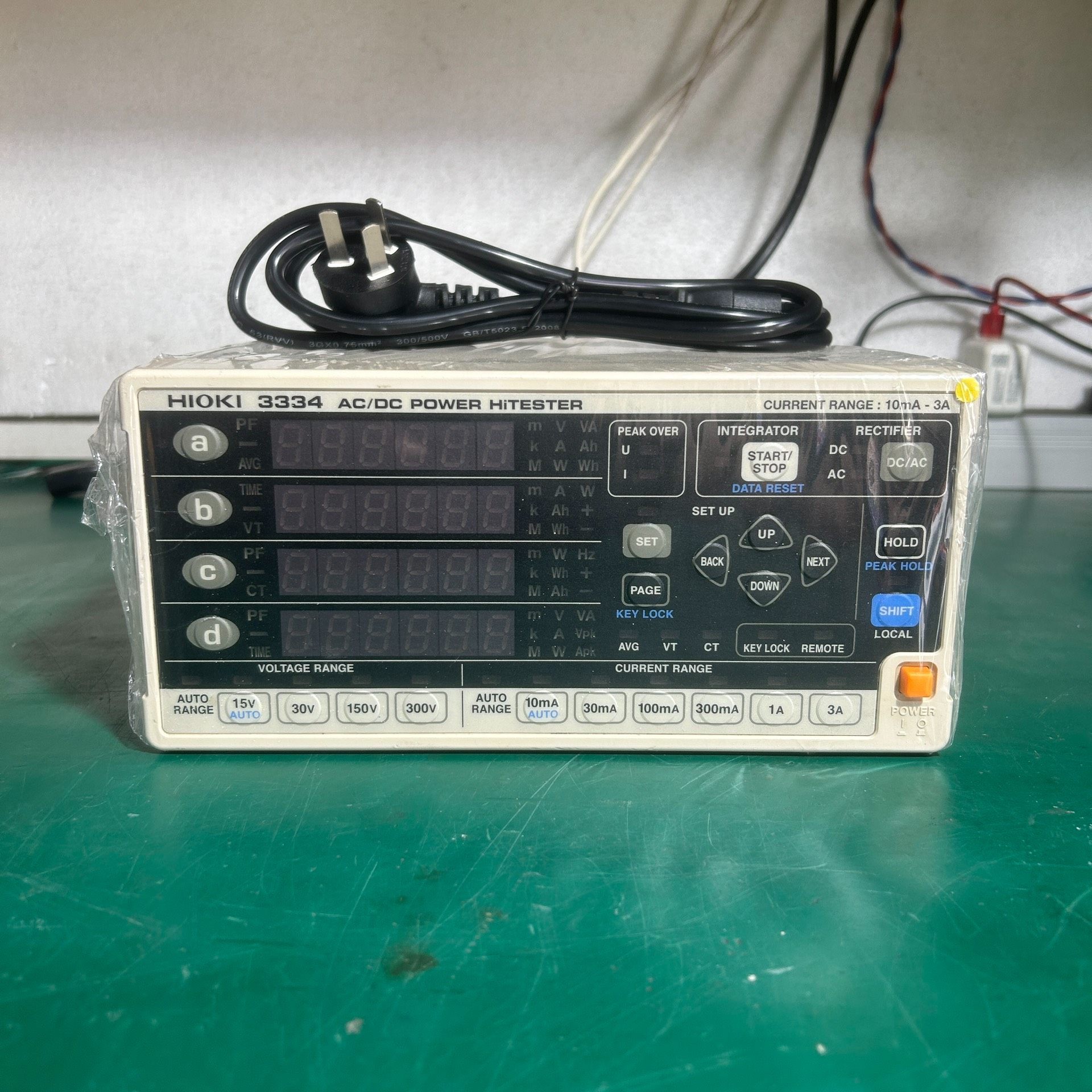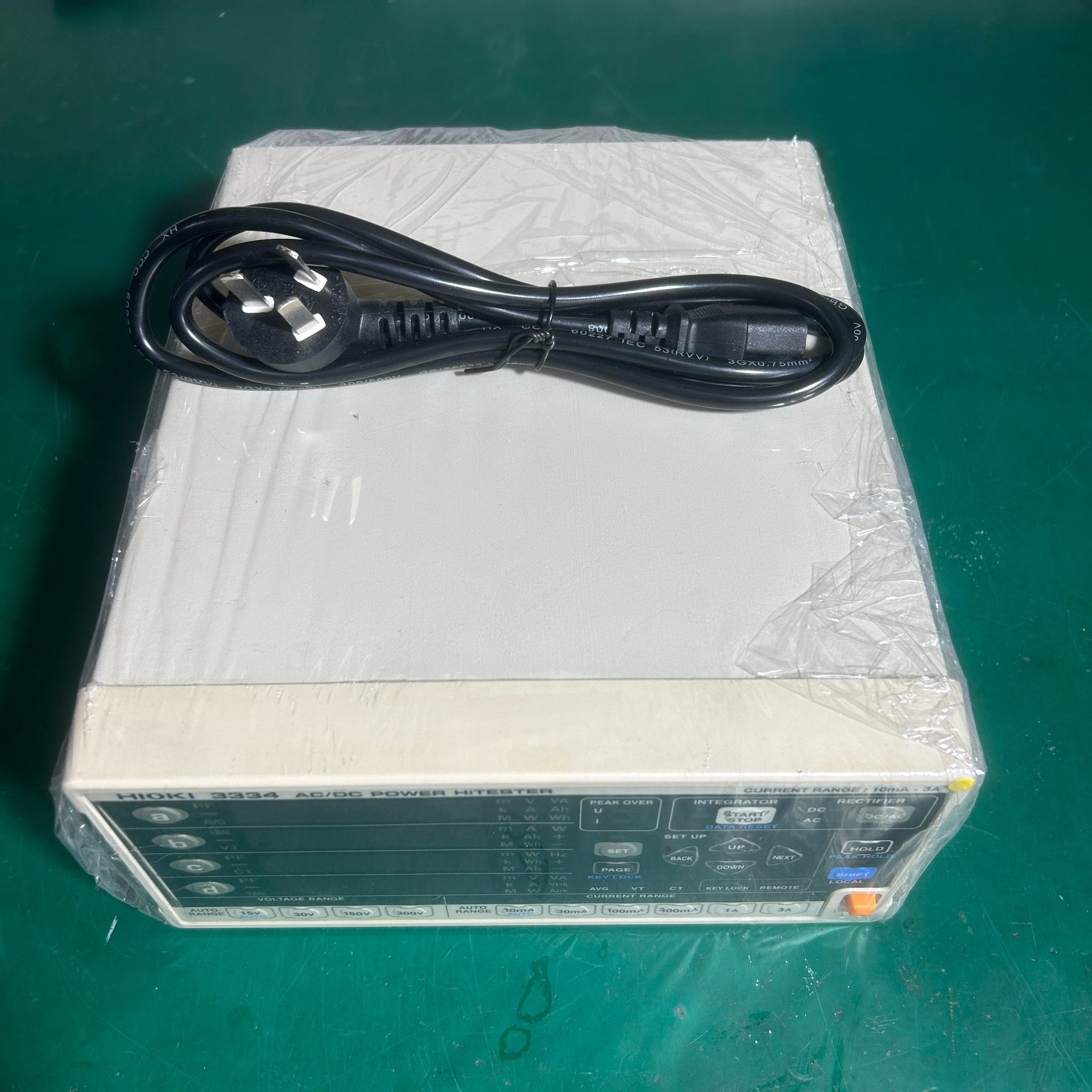 HIOKI 3334 AC/DC POWER HITESTER是一款由日本日置(HIOKI)生产的高精度功率测试仪器,适用于交直流电气参数的精确测量与分析。设备整体为白色机身,搭配黑色操作面板,布局清晰,设有多组LED数码显示屏,可同时显示电压、电流、功率、功率因数等多项参数,便于实时监测。面板配备START/STOP、DATA RESET、SET等功能按键及方向键,操作便捷,附带原装电源线,即插即用。