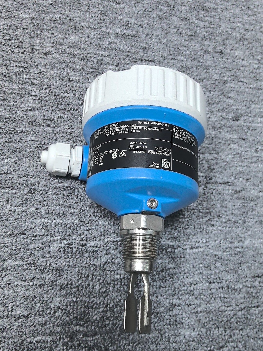 恩德斯豪斯(Endress+Hauser)Liquiphant FTL41-2DH0/0 音叉液位传感器是一款基于音叉振动原理的物位测量设备,专为工业过程中的液位或料位检测设计。其蓝色圆形外壳具有良好的防护性能,顶部的金属音叉探头采用耐用材质,确保在复杂工况下的稳定运行。