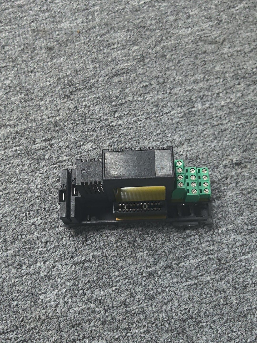 未知品牌 PD640 BM001 模块底座是一款专为工业自动化设备设计的安装配件,采用黑色塑料主体与绿色连接器组合,结构紧凑,具备良好的机械强度和稳定性,适用于各类电子模块的固定、支撑及连接场景。