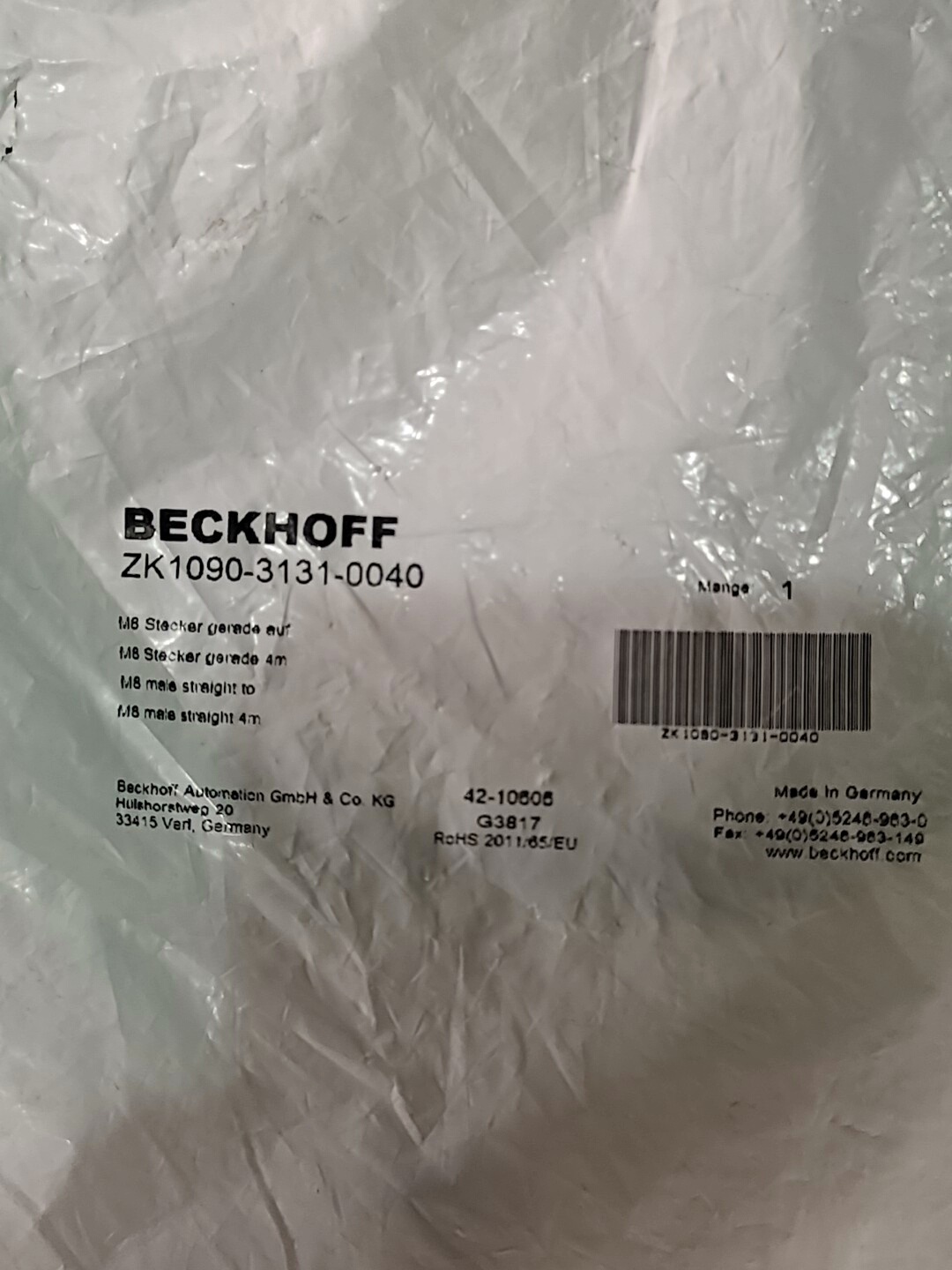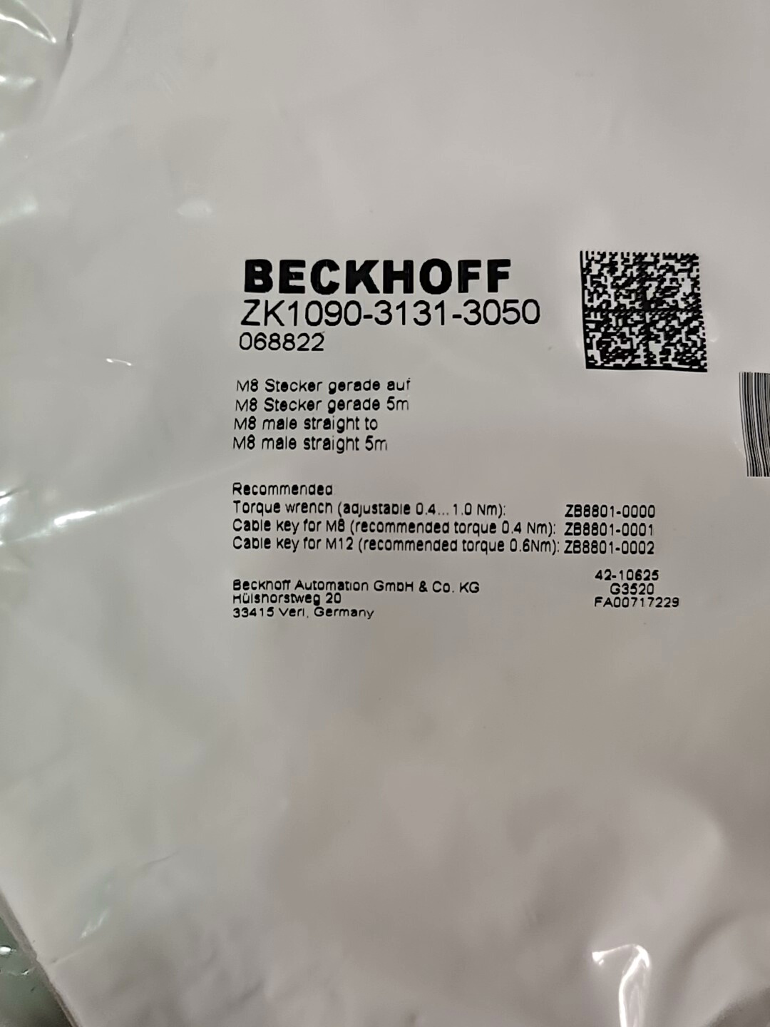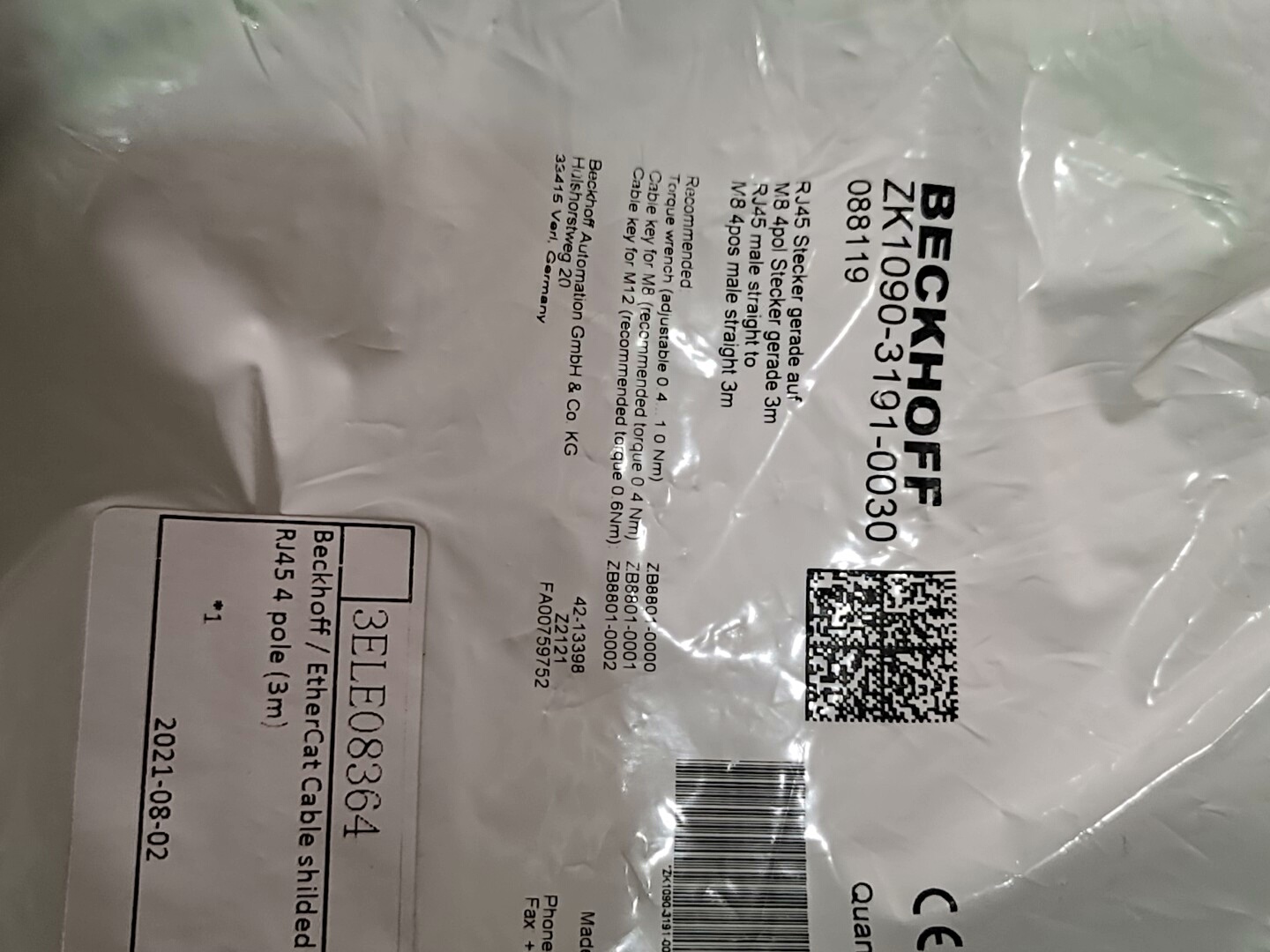 全新原装Beckhoff倍福连接线,采用高柔性绿色线缆设计,具备良好的耐弯折性和抗干扰能力,适用于工业复杂环境。两端配备标准连接器,确保连接稳定可靠,满足自动化系统中信号传输的高精度要求。