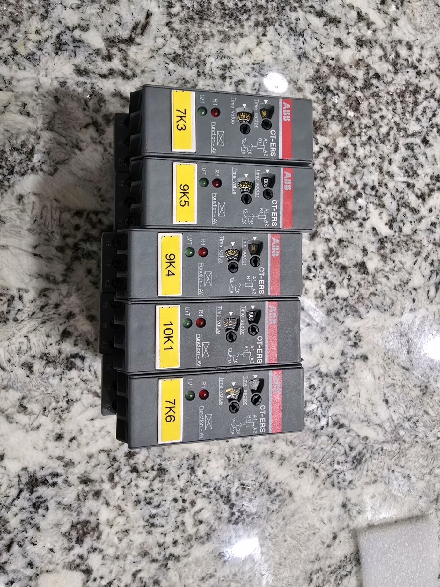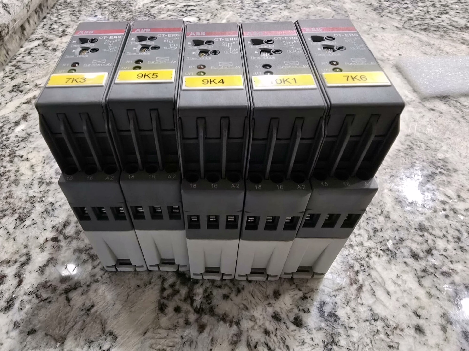 本产品为ABB品牌下的1SVR430102R0100型号安全继电器,属于工程余货,原装正品,成色极新。产品外观为灰色外壳,侧面带有红色条纹,正面配备黄色标签,标有7K3、9K5、9K4、10K1、7K6等具体标识,集成调节旋钮和UT(欠压)、R(红色)、F(故障)状态指示灯,适用于工业低压配电系统中的电流保护与安全控制。
