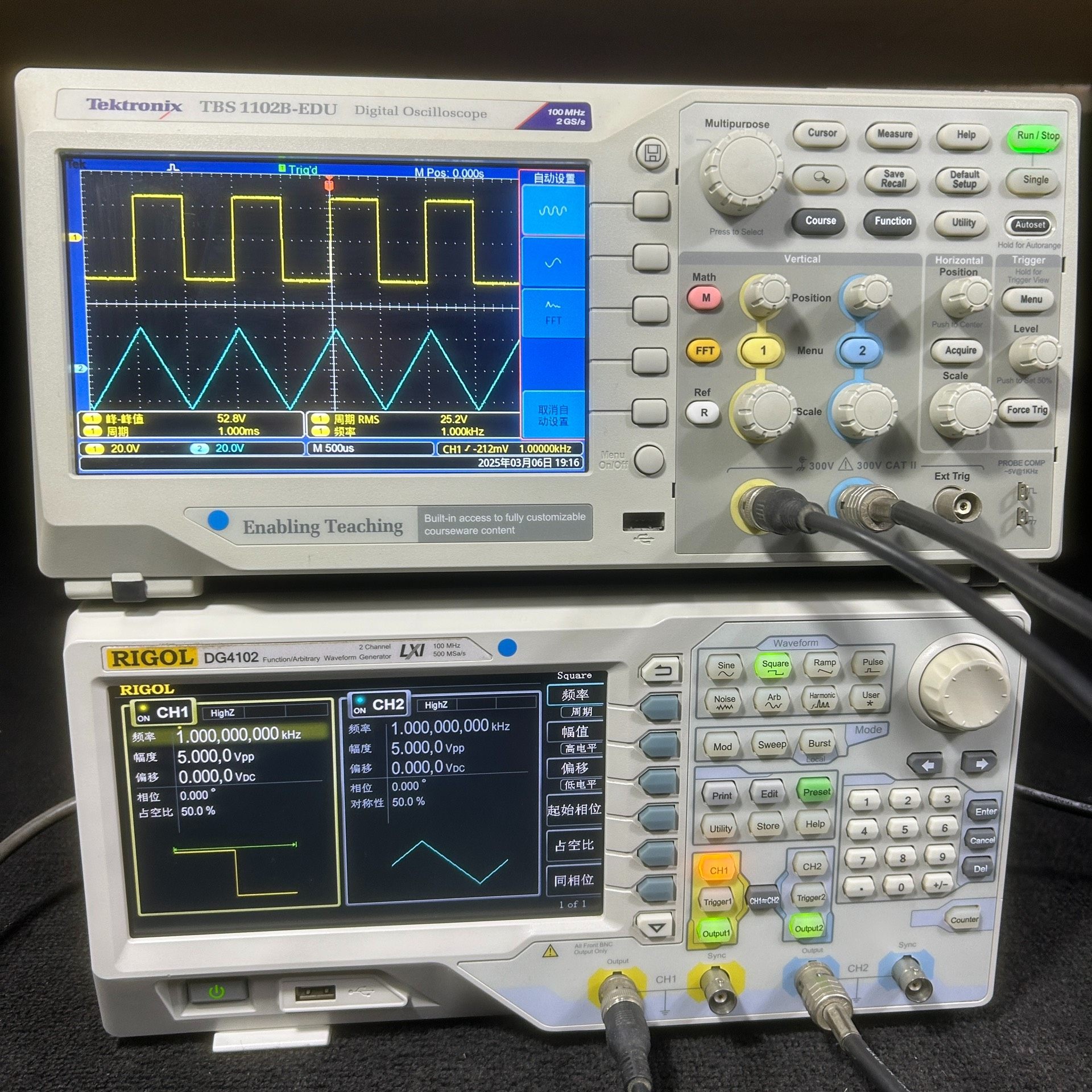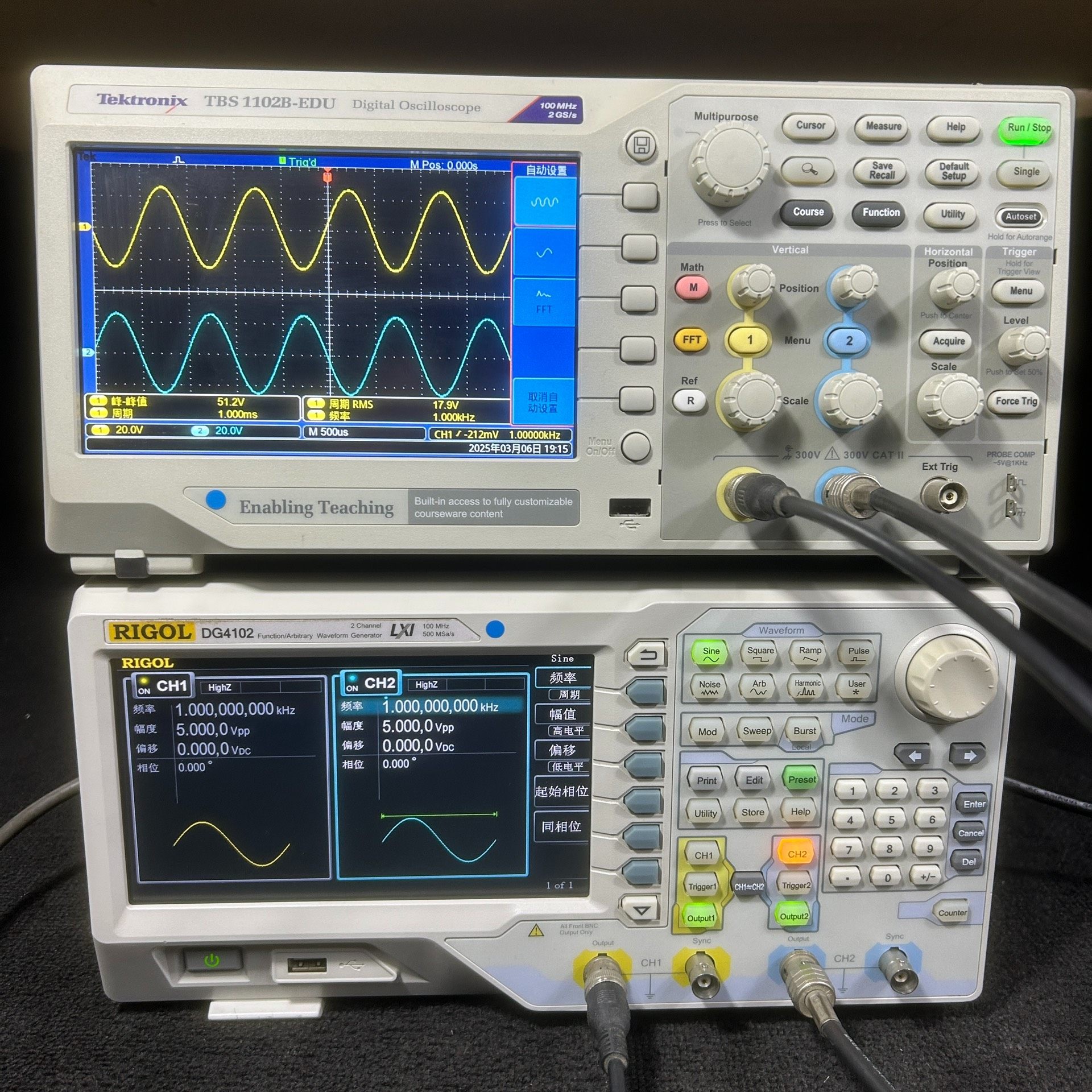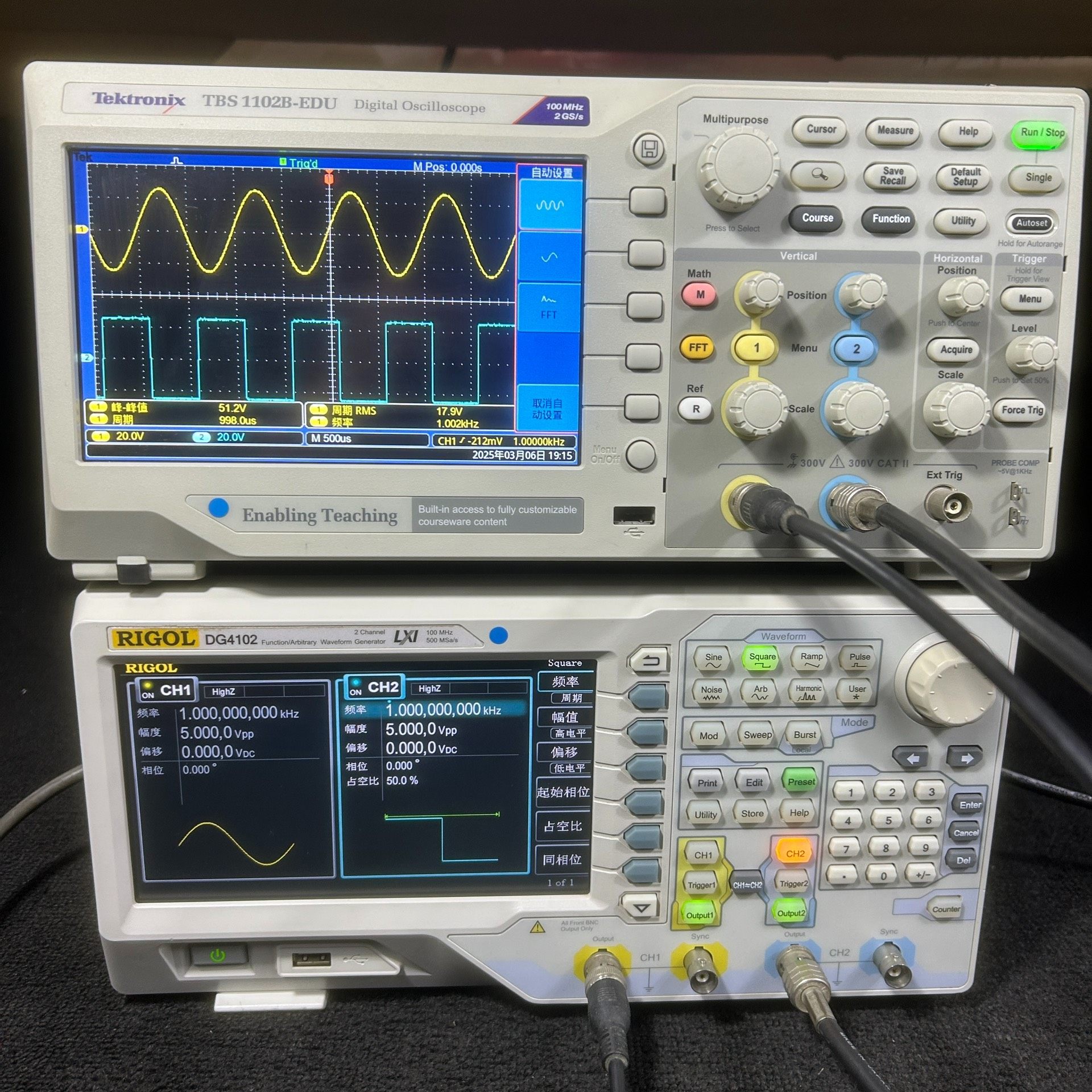 - 当前设置频率:1.000000000 kHz(CH1/CH2)