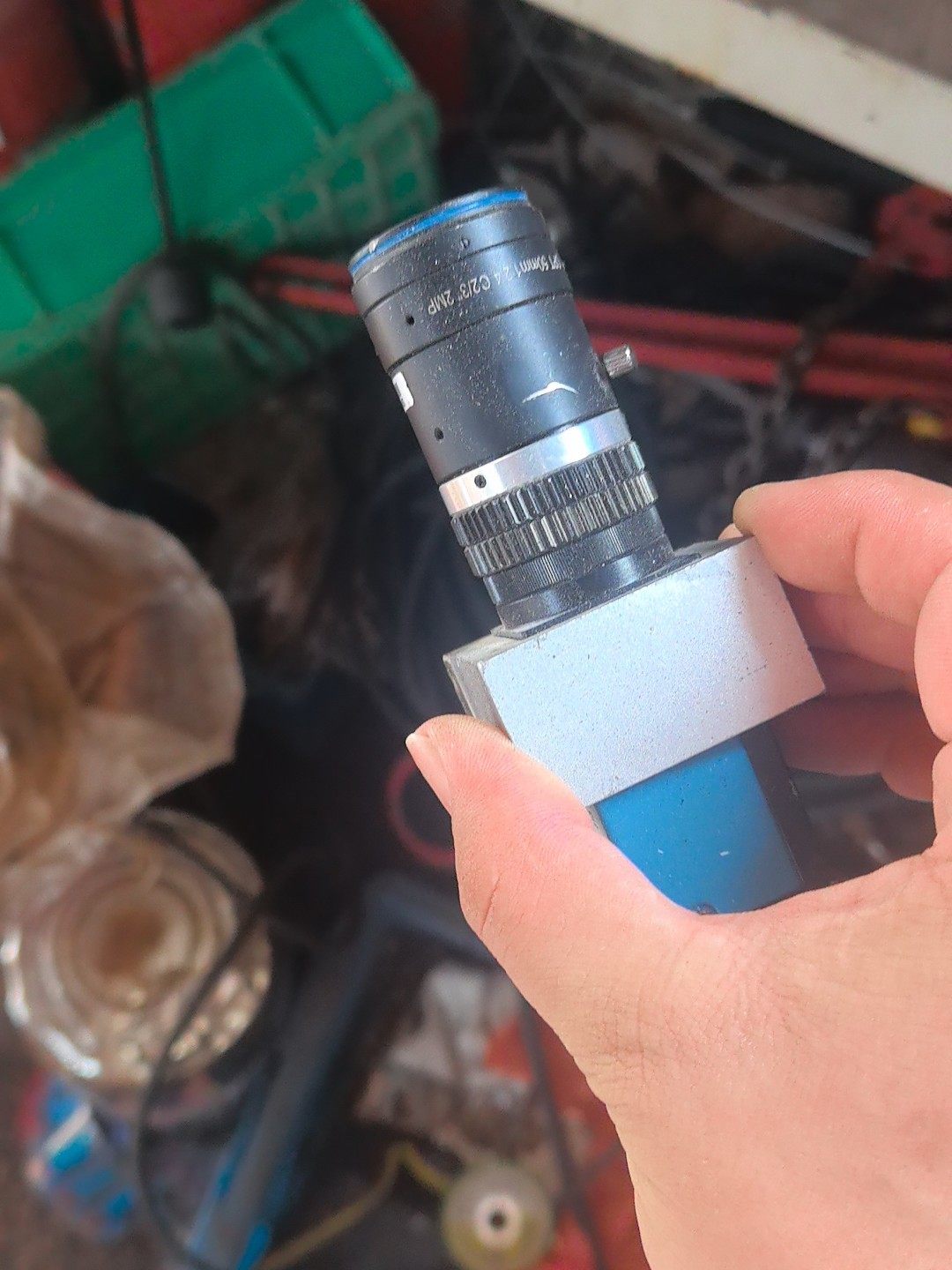 IMAGINGSOURCE DMK 33GP1300工业相机采用德国设计、台湾组装,具备高可靠性与稳定性,适合工业环境下的长期连续工作。设备外壳为金属材质,结构坚固,能有效防护内部精密元件;顶部配备可调节镜头,支持焦距灵活调整,满足不同成像距离需求。标签信息完整,成色良好,显示其使用维护状况佳。
