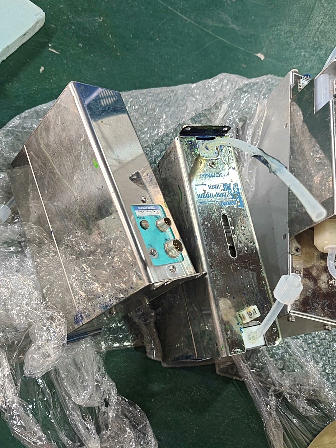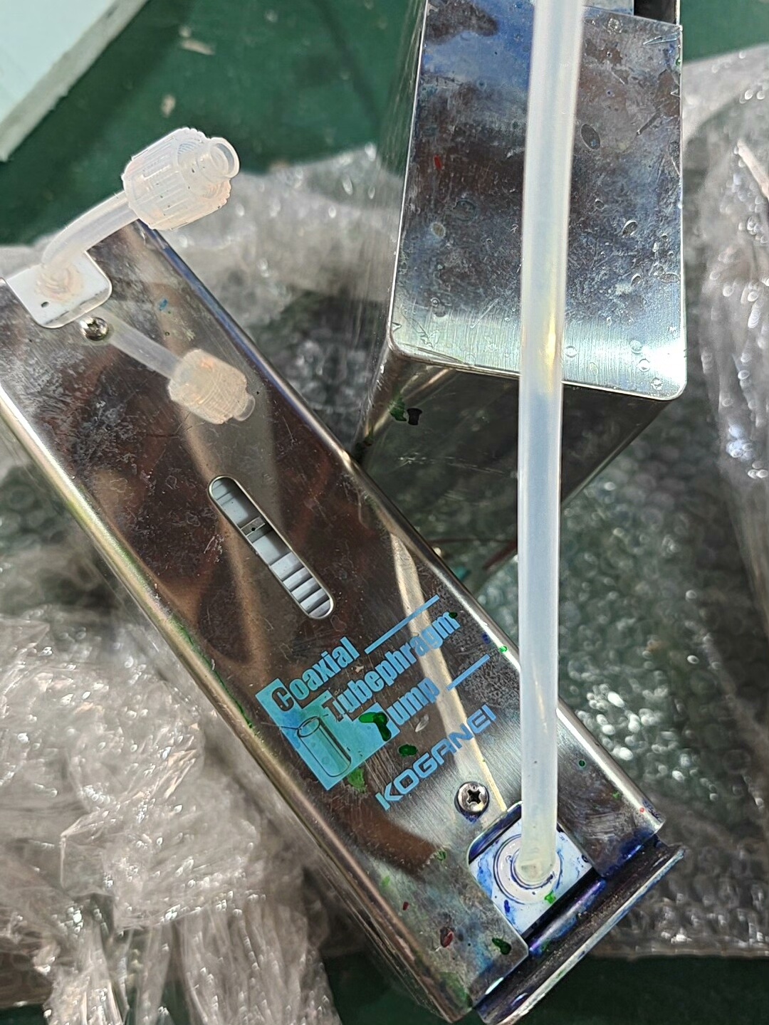 KOGANEI F-SEP106A1-T1/4 同轴管式隔膜泵是一款适用于工业气动系统的流体输送设备,采用金属外壳设计,结构紧凑,具备良好的耐用性和稳定性。该产品为拆机件,表面有使用痕迹,但核心功能部件完好,可满足自动化生产等场景的流体传输需求。
