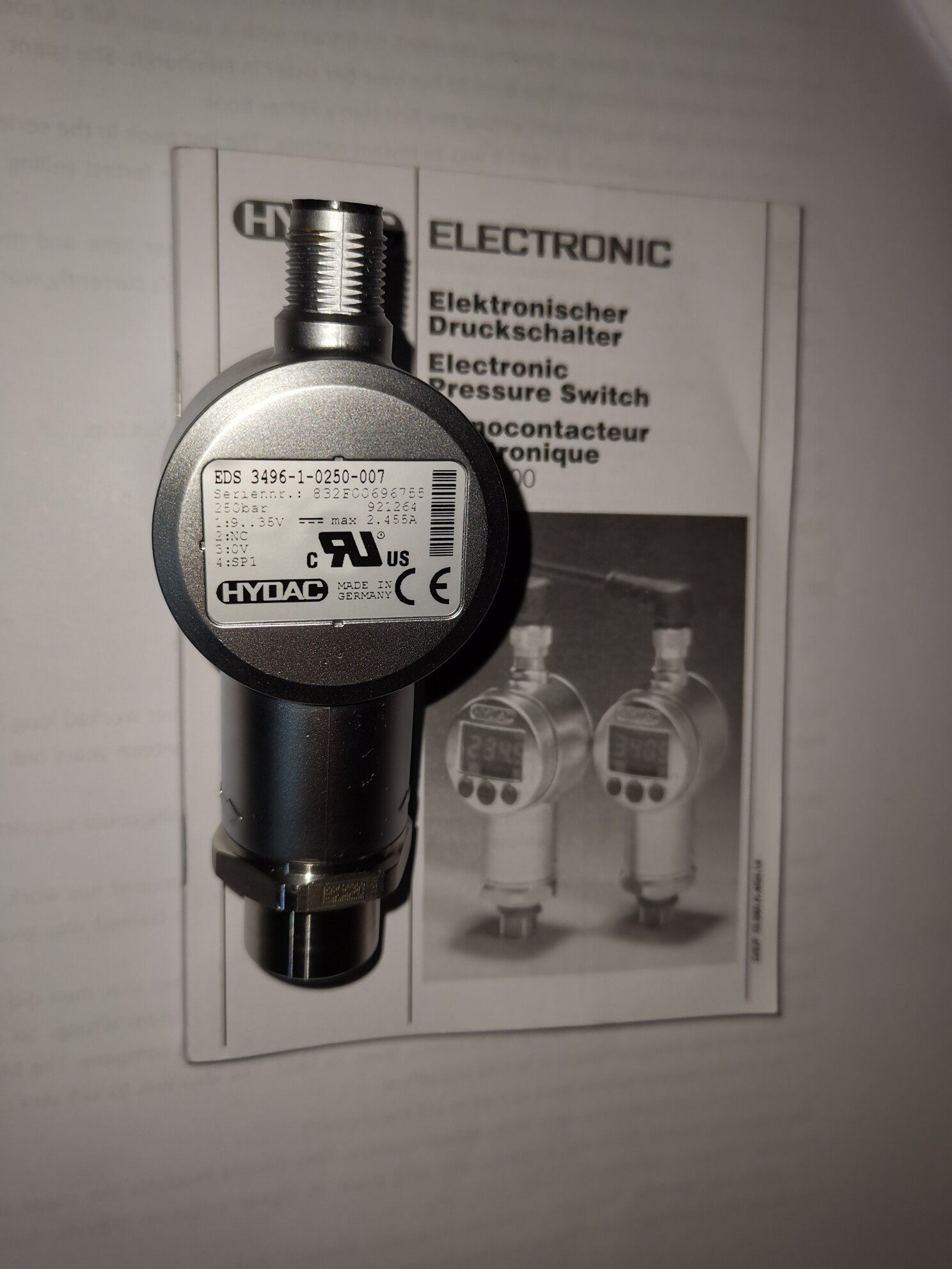 HYDAC EDS 3496-1-0250-007 是一款高性能电子压力开关,隶属于EDS 3000系列,专为工业自动化领域的压力监测与控制设计。产品融合了精准的压力测量技术与便捷的操作功能,广泛应用于液压、气动等流体系统中,实现对压力参数的实时监控与开关量输出控制。