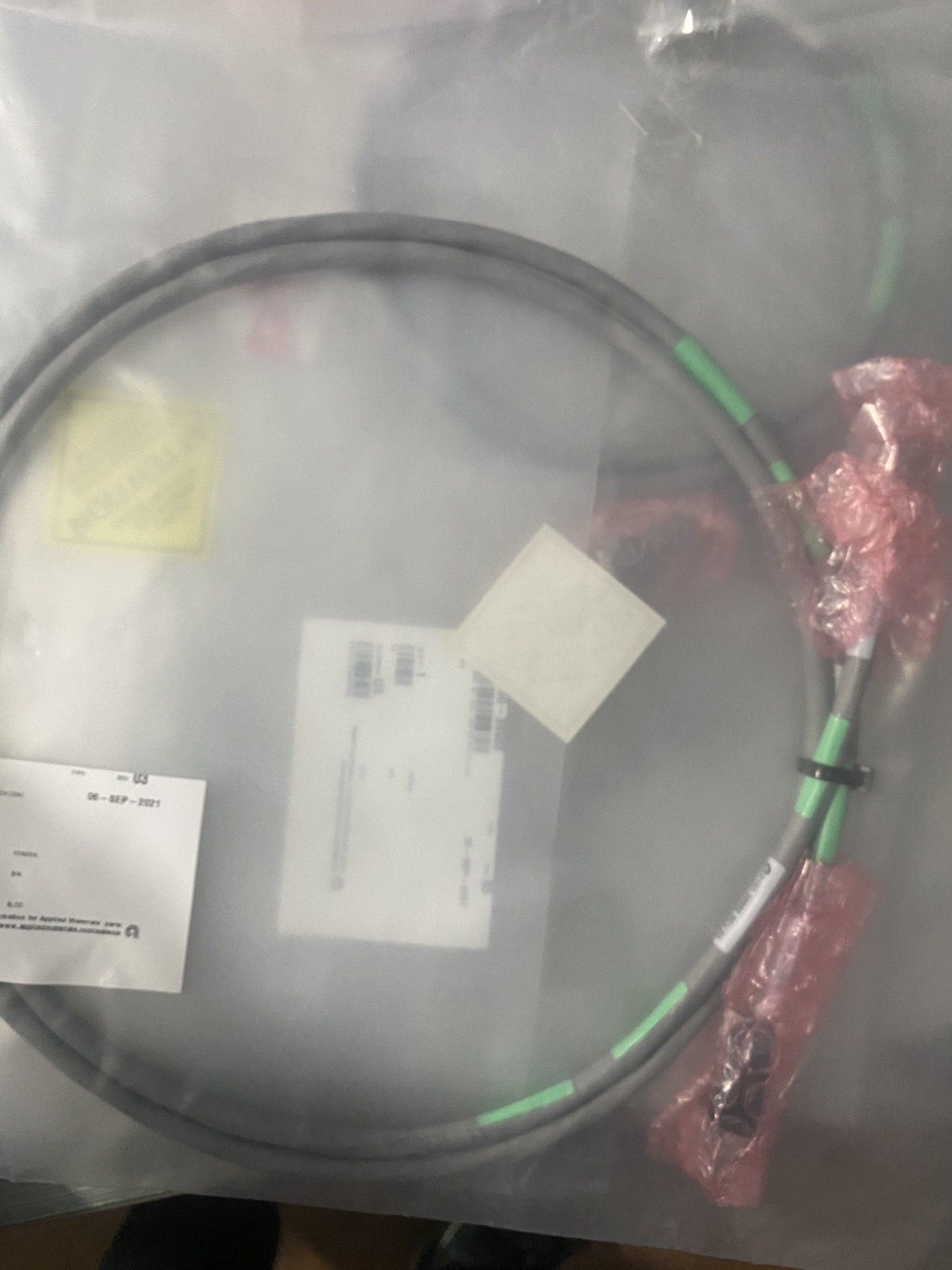 Applied Materials U150-39988 电缆组件是一款专为工业自动化领域设计的连接线材,主要用于交换机中心等关键设备的信号或数据传输。产品标签显示其版本为03,生产日期为2021年9月6日,产地为美国,具备可靠的制造工艺和稳定的性能,适用于对连接稳定性要求较高的工业环境。