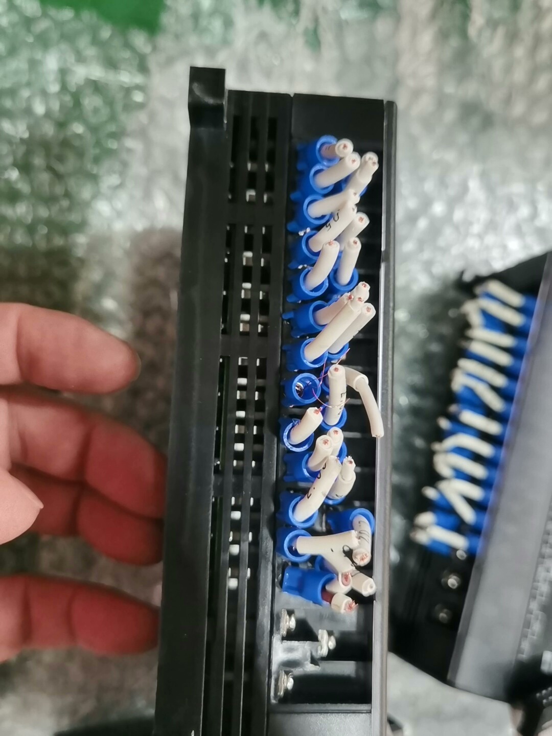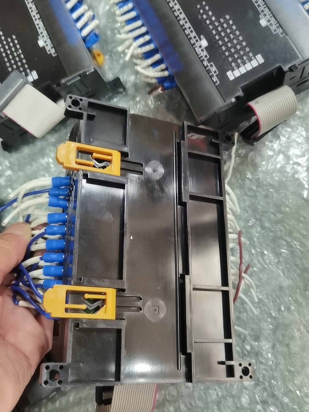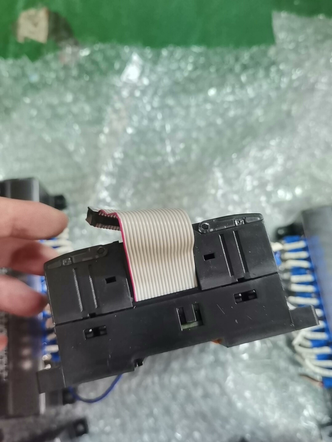 - 外观设计:黑色外壳,结构紧凑,带有蓝白标签的接线端子,便于接线与维护,附带排线方便与主模块连接。