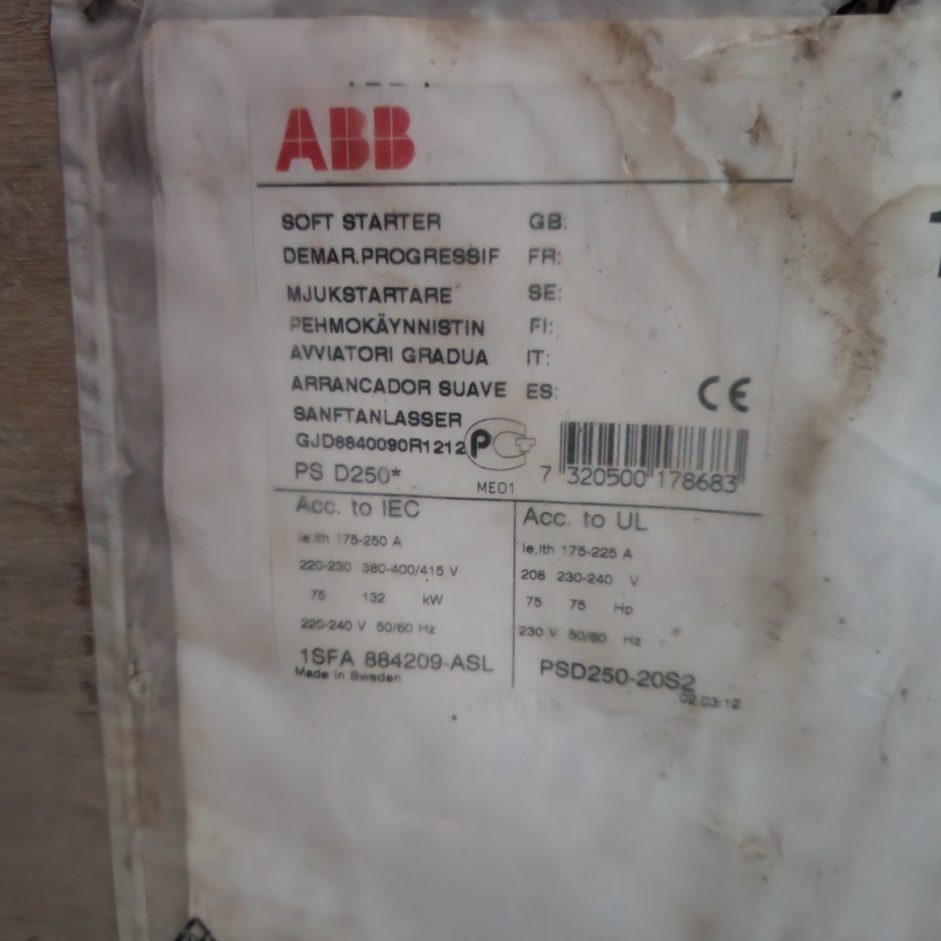 全新库存ABB软启动PSD250-20S2