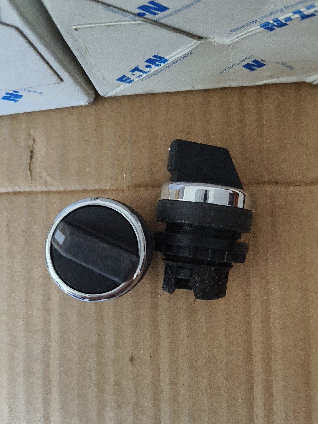 EATON伊顿默勒系列二位选择开关执行器,包含型号A22-RWK1V(数量17只)和A22-RWK3R(数量7只),总数量24只,总打包价240元包邮。产品采用镀铬材质,适用于工业控制领域的电路切换操作,为设备提供稳定可靠的控制信号输入。