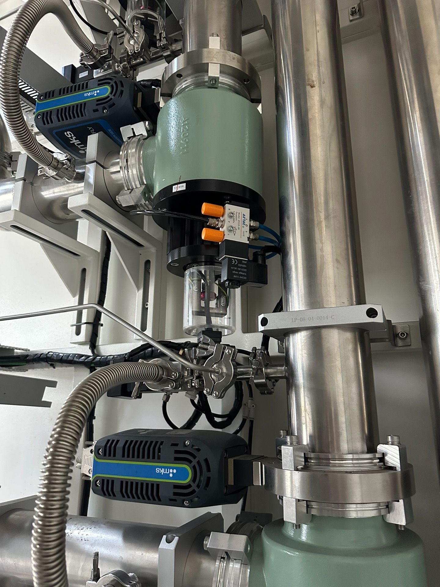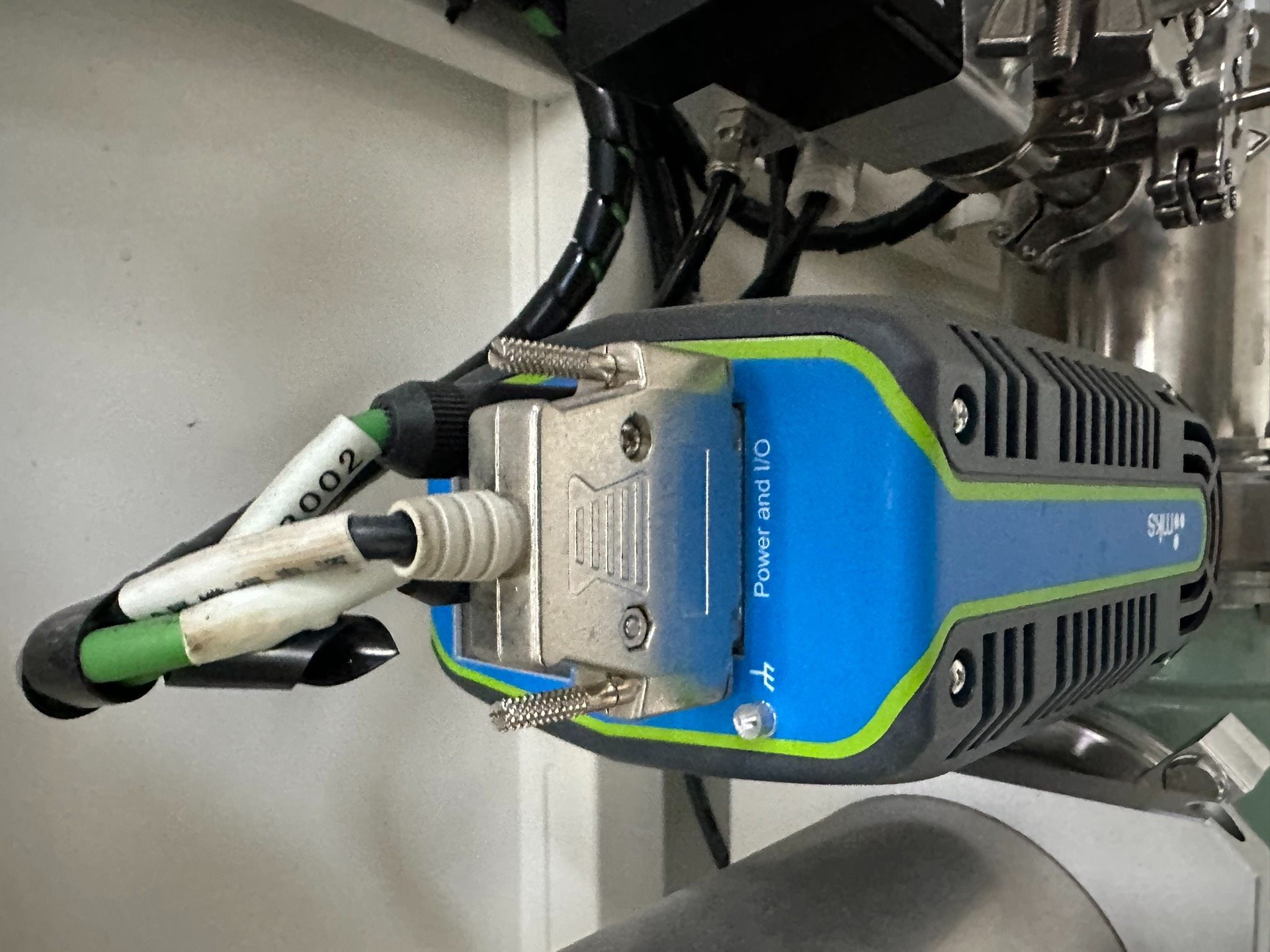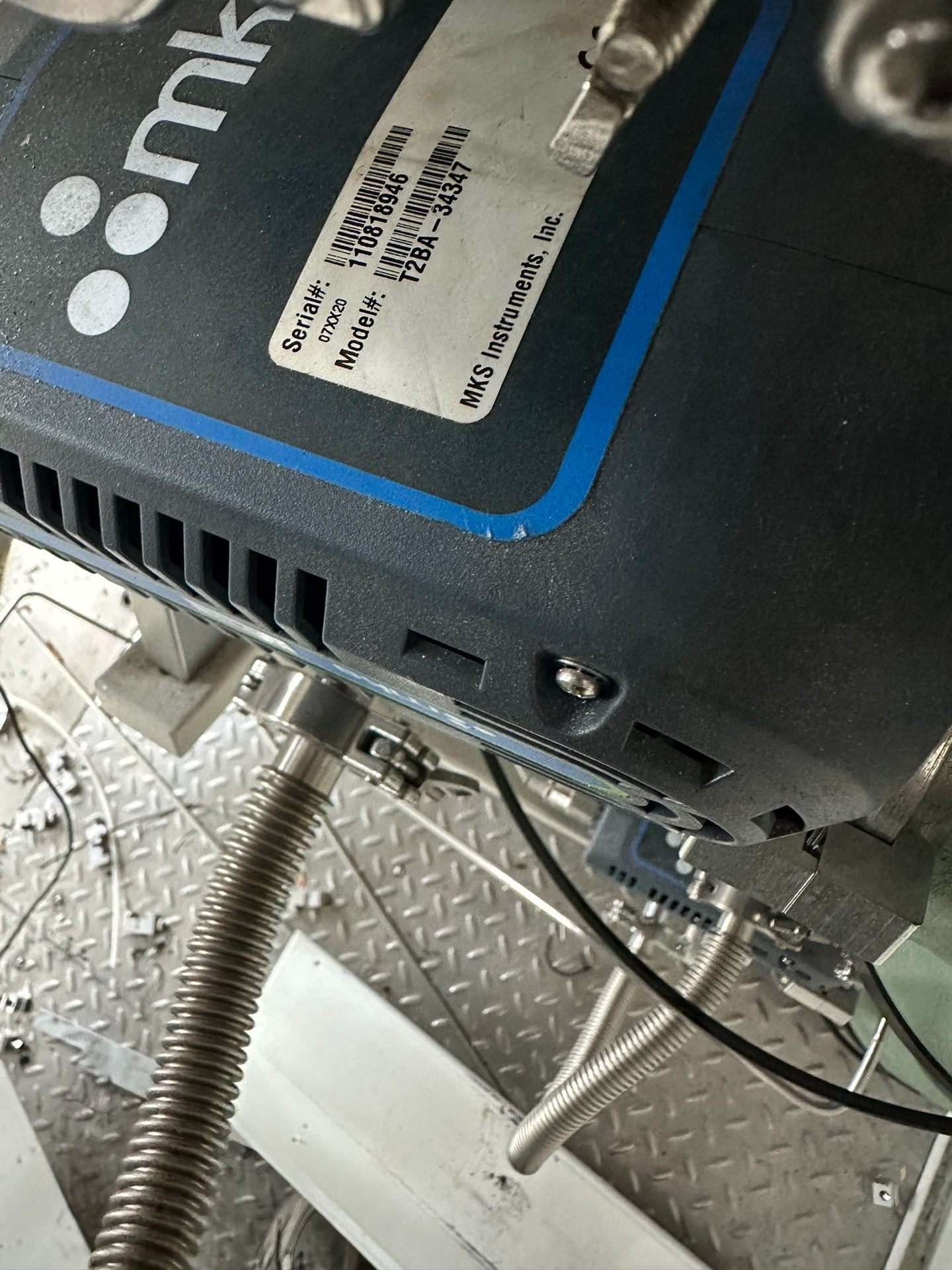 MKS T2BA-34347 蝶阀是一款由知名品牌MKS生产的流体控制设备,整体采用黑色外壳设计,表面带有散热孔以确保设备稳定运行。正面配备蓝色与绿色相间的品牌标签,标识清晰。该产品目前处于待拆机状态,成色漂亮,适合需要替换或维修流体控制系统的场景使用。