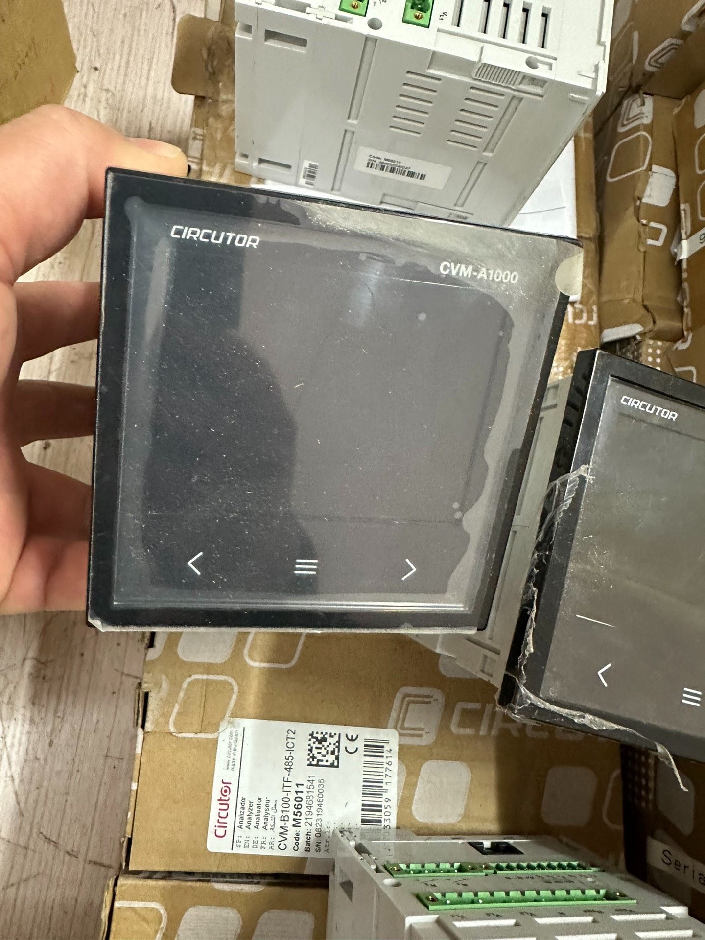 本产品为CIRCUTOR(西谷铎)品牌旗下的CVM系列电力监控仪表,包含CVM-A1000和CVM-B100两种型号,均为全新原装正品。设备采用黑色方形外壳设计,配备清晰显示屏及便捷操作按钮(含上下箭头与菜单键),适用于工业电力系统的参数监测与控制。