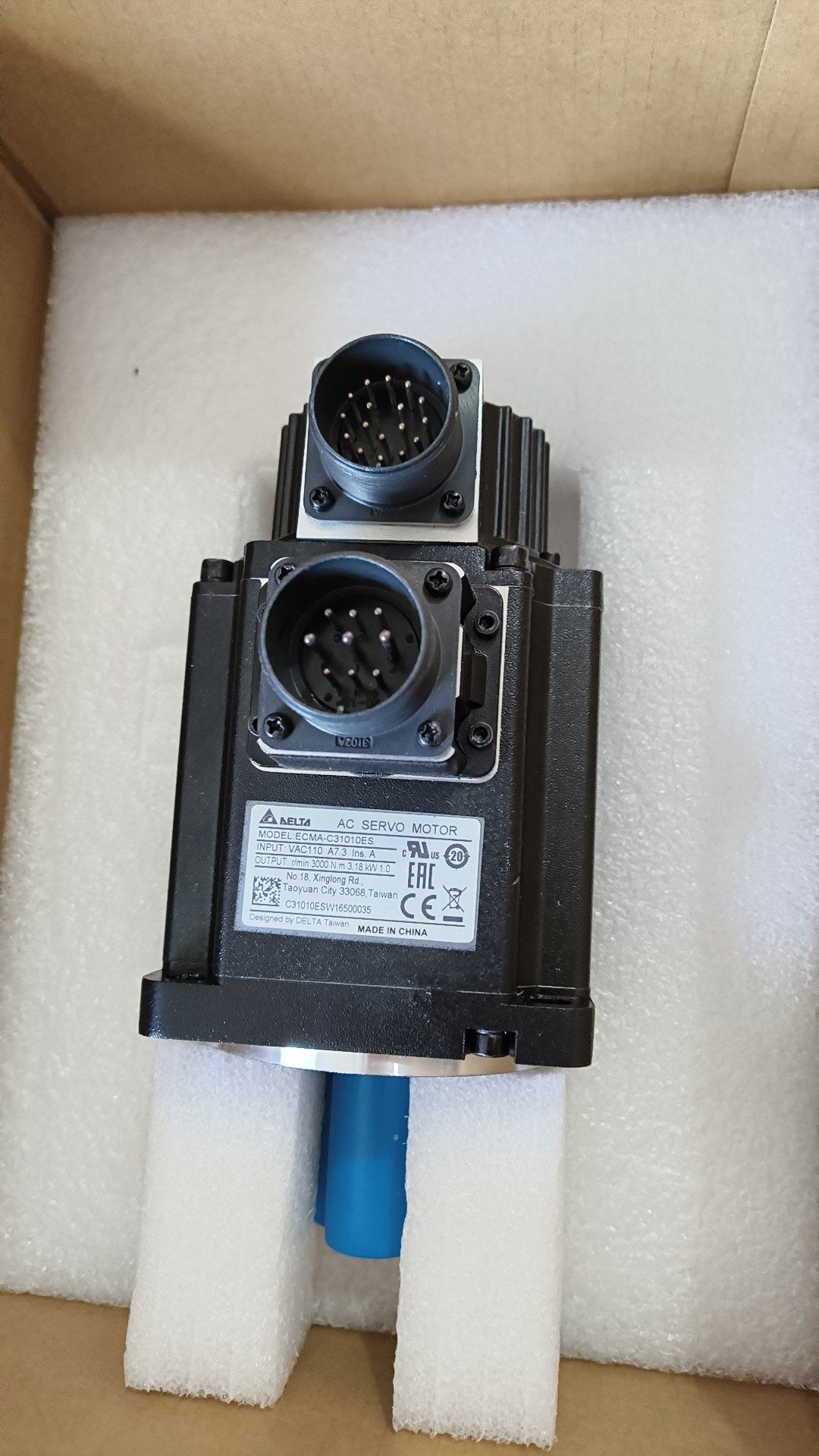 台达ECMA-C31010ES伺服电机为全新原装产品,设计于台湾,中国制造,具备以下核心特点: