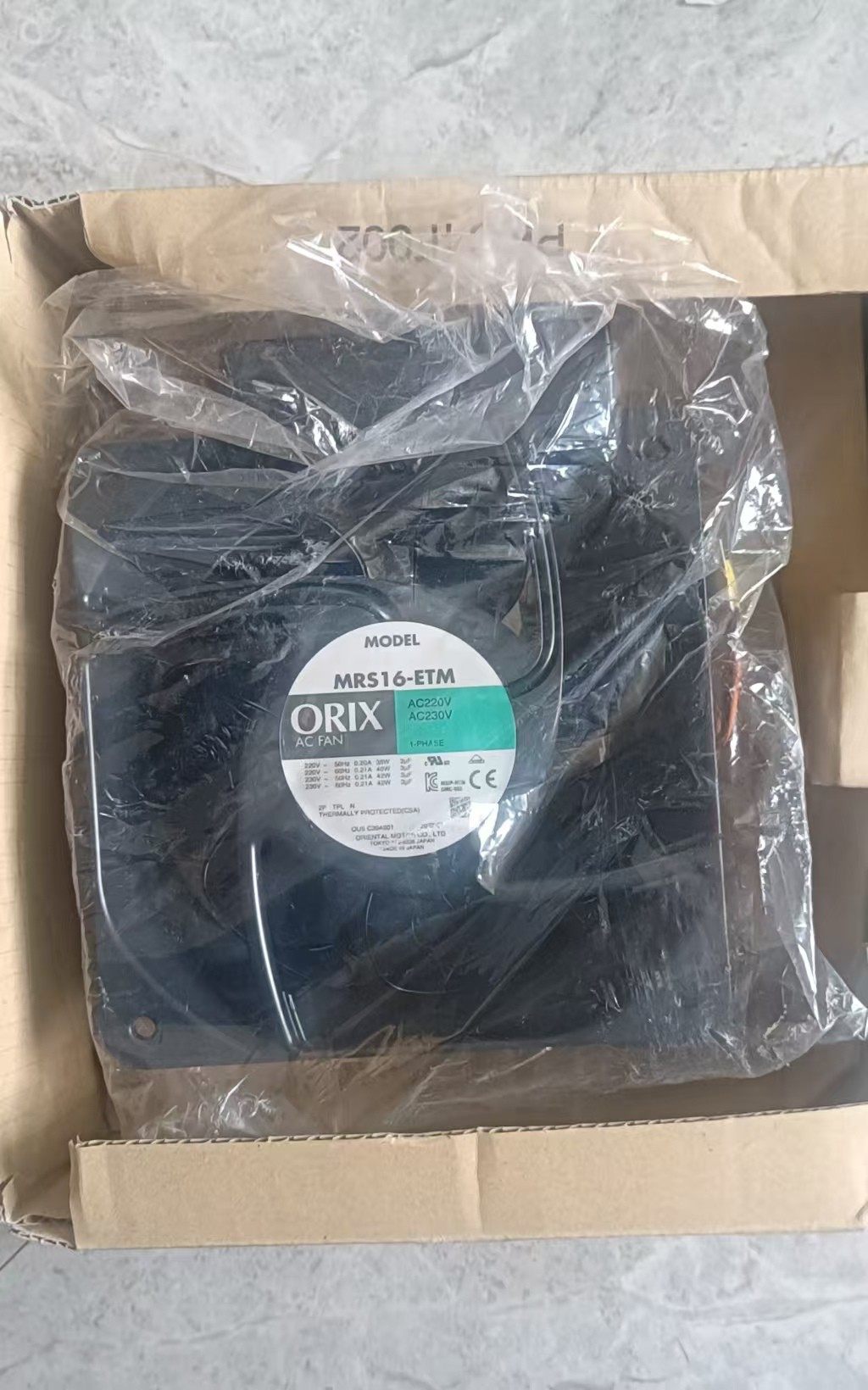 Oriental Motor MRS16-ETM 散热风扇是由日本东方马达(Oriental Motor Co., Ltd.)生产的全新原装产品,专为工业设备提供高效散热支持。产品采用坚固纸箱包装,标签清晰标注型号及品牌信息,符合CE认证标准,确保品质与安全性。
