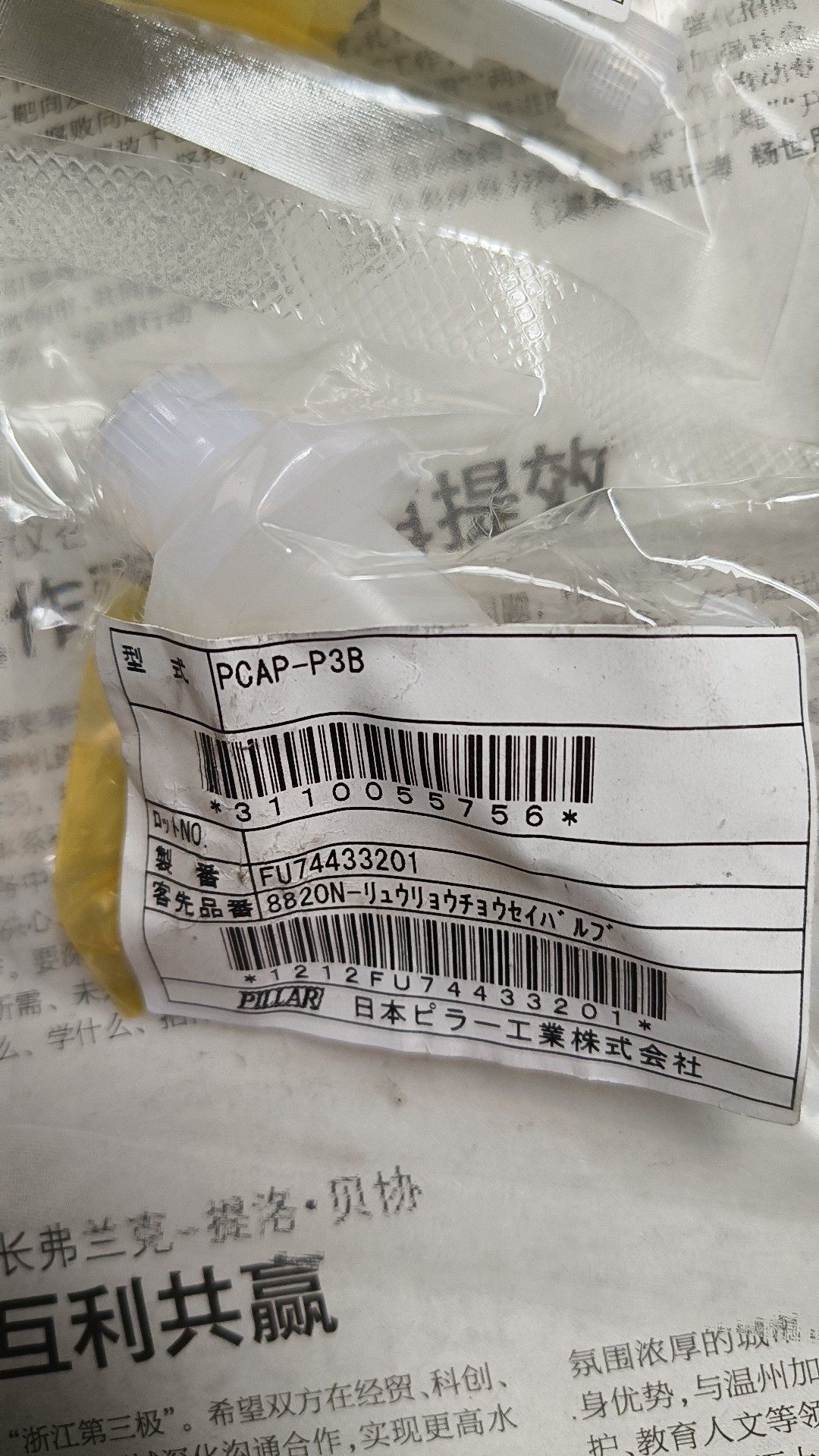 PILLAR PCAP-P3B 针阀为日本原装进口产品,由日本ピラー工業株式会社制造,采用独立透明塑料袋包装,确保产品在运输和存储过程中不受损坏,保持原装未拆封状态。产品主体呈黄色,结构精密,适用于对流体流量控制有较高要求的场景。