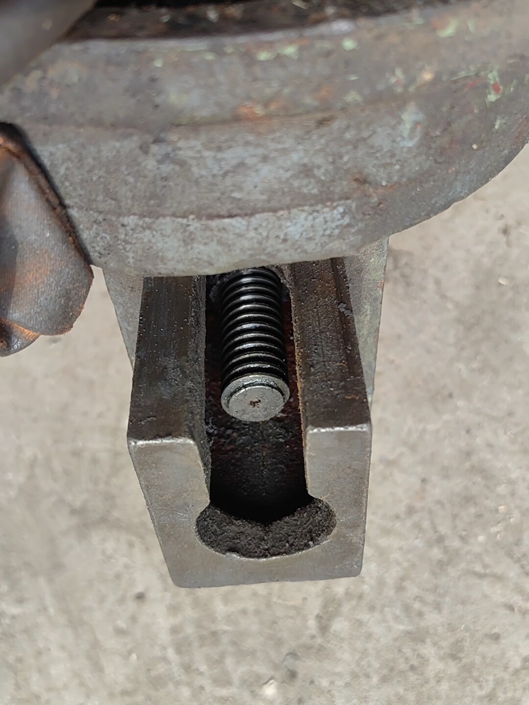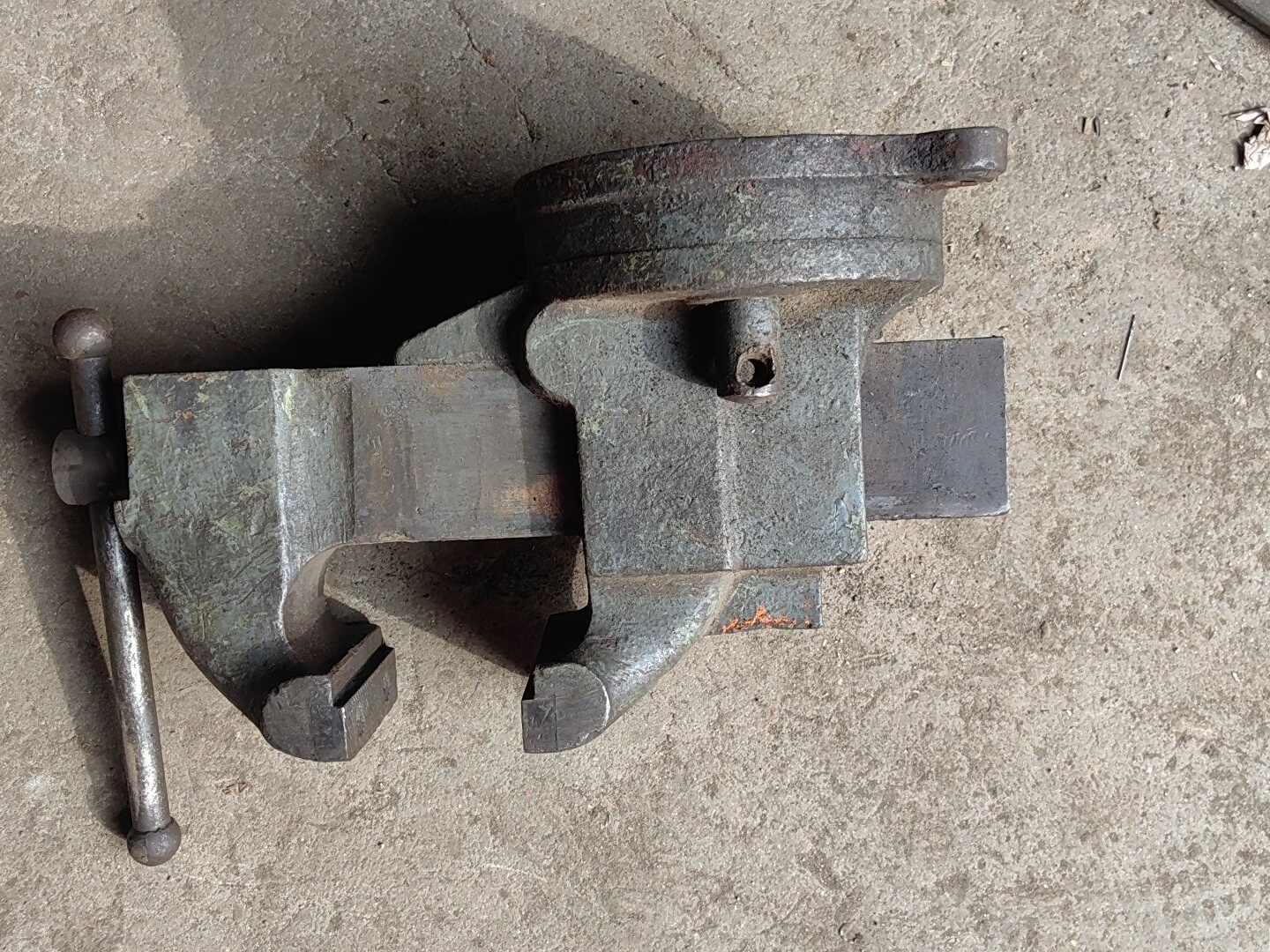 本款台虎钳为大象品牌4寸工业级台虎钳,采用钳口镶钳设计,增强夹持稳定性与耐用性。整体结构稳固,净重45斤,确保使用过程中的稳固性。虽有明显使用痕迹且缺乏保养,但无焊接、无断裂,核心功能完好,可正常夹持工件进行加工操作。