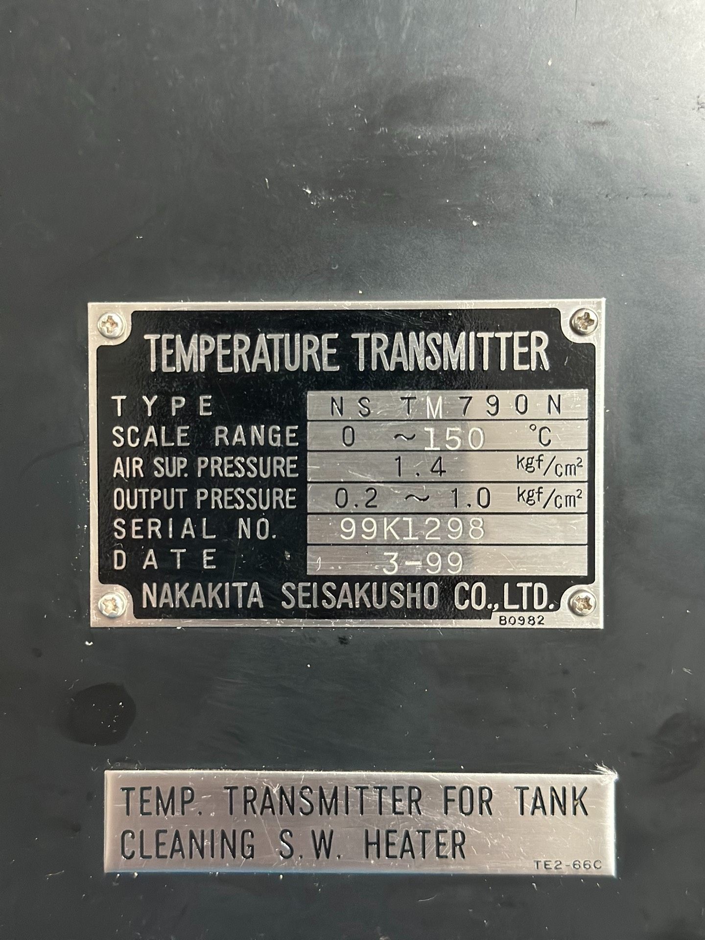 本产品为Nakakita品牌的NSTM790N型号温度变送器,属于原厂9新件,现货供应。专为工业环境下的温度测量与信号变送设计,适用于 tank cleaning S.W. heater(储罐清洗蒸汽加热器)等场景。