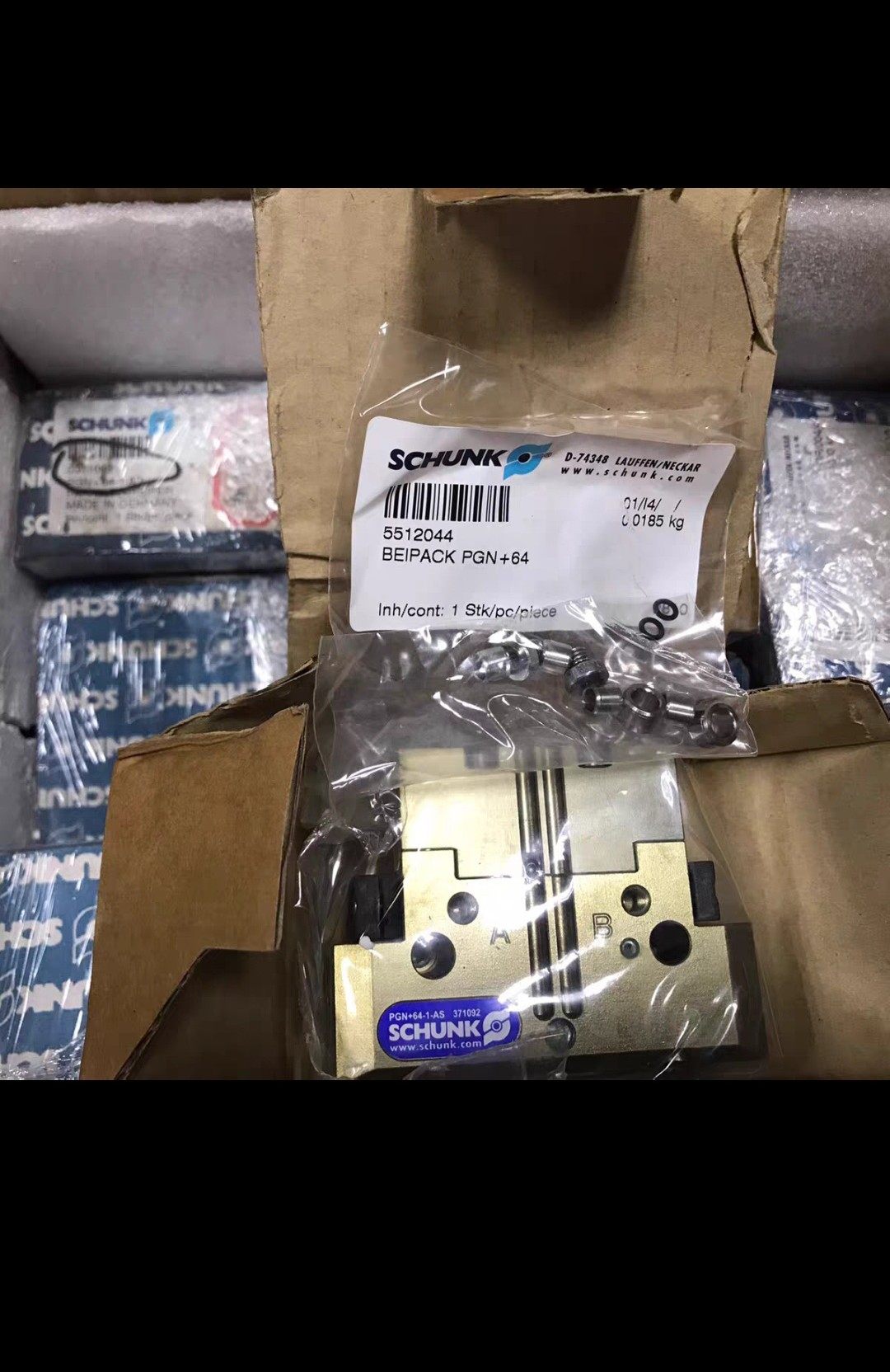 SCHUNK PGN+64-1-AS手指气缸是德国雄克(SCHUNK)品牌旗下的高精度平行夹爪产品,订货号371092。该产品采用优质金属材质制造,具备结构紧凑、夹持力稳定、导向精密等特点。两爪平行设计确保工件在抓取过程中受力均匀,避免偏移;A、B双气接口配置,支持气动控制,响应迅速,满足自动化生产中的快速夹持需求。产品附带全套安装配件,全新库存状态,开箱即可安装使用。